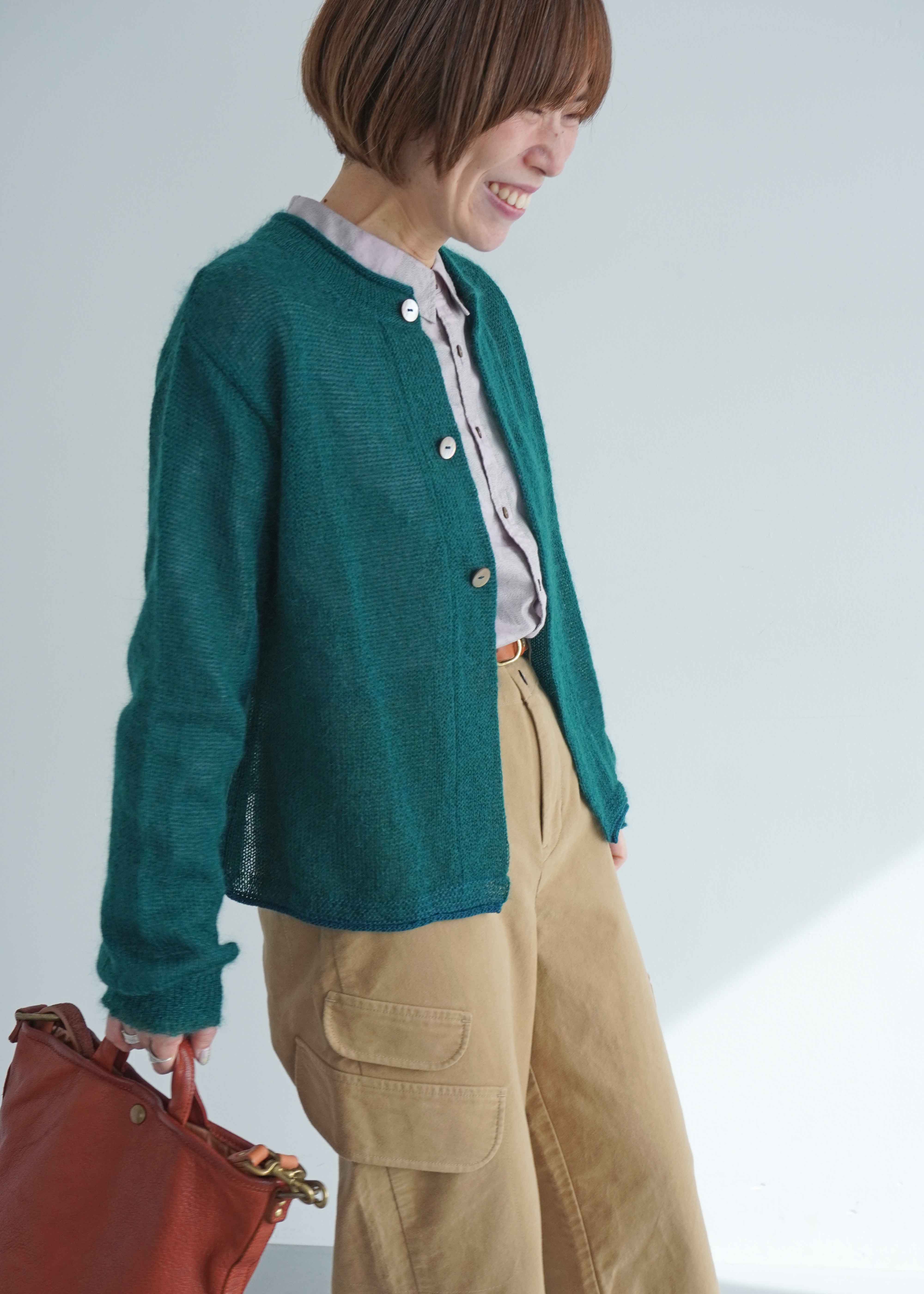 20/2コットンジャガード春となり柄 スタンド襟カーディガン