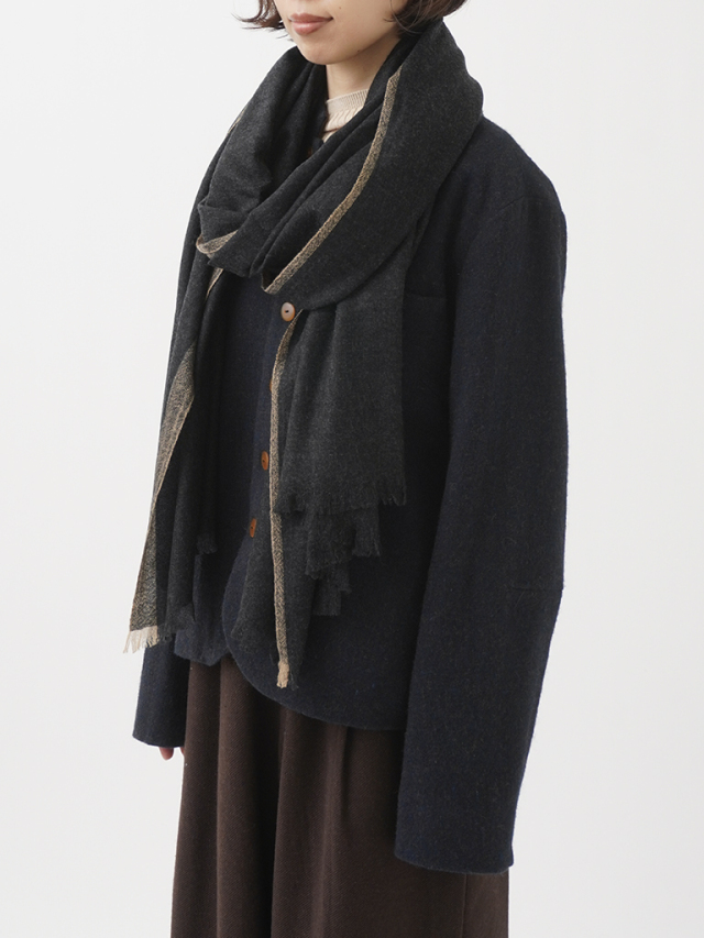 ふわっとエアリーな質感で、首元に巻いた時の自然なボリュームやドレープが出てくれるのが魅力です。