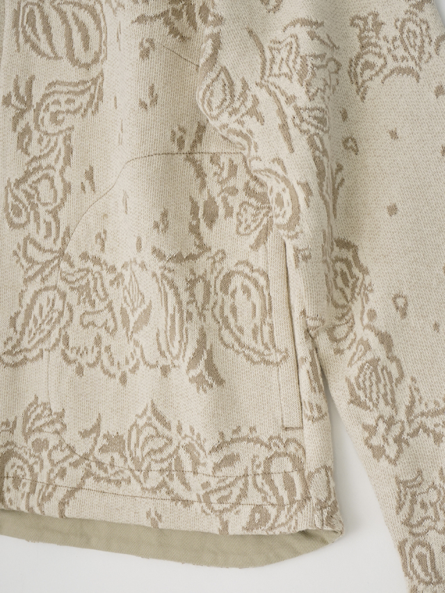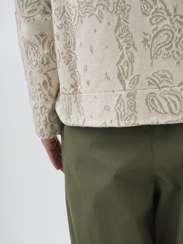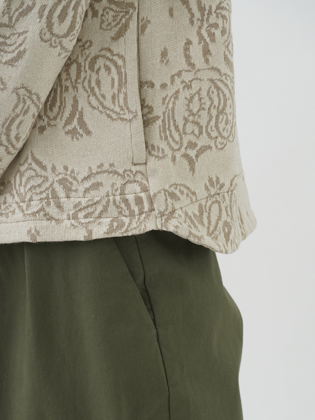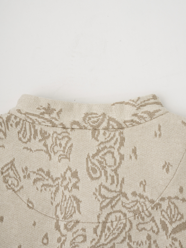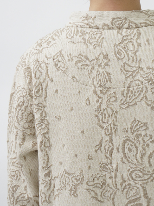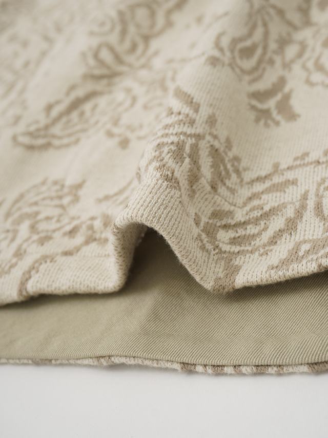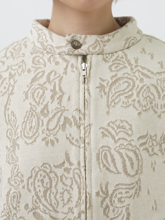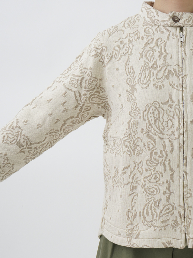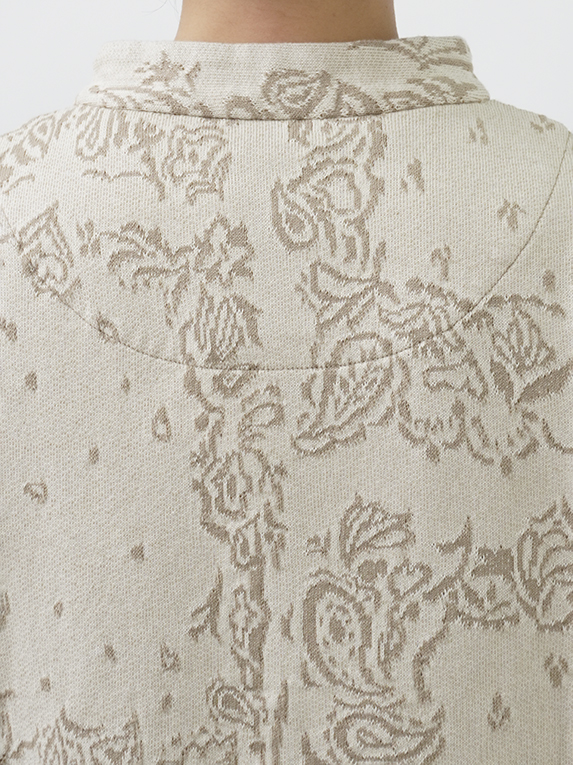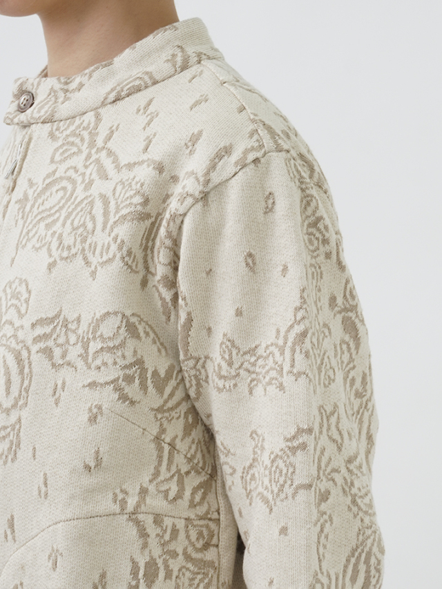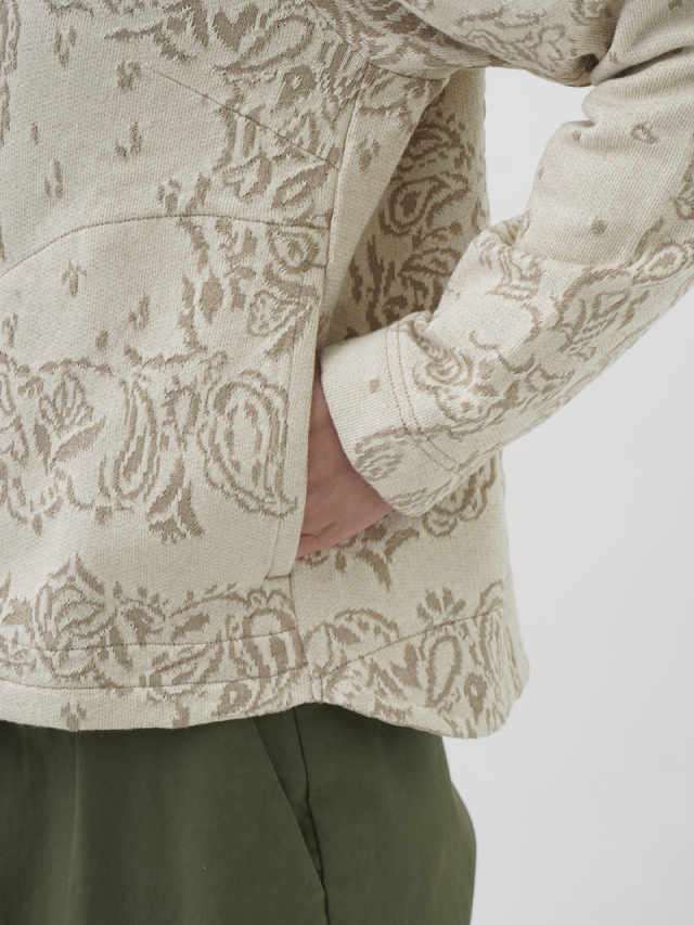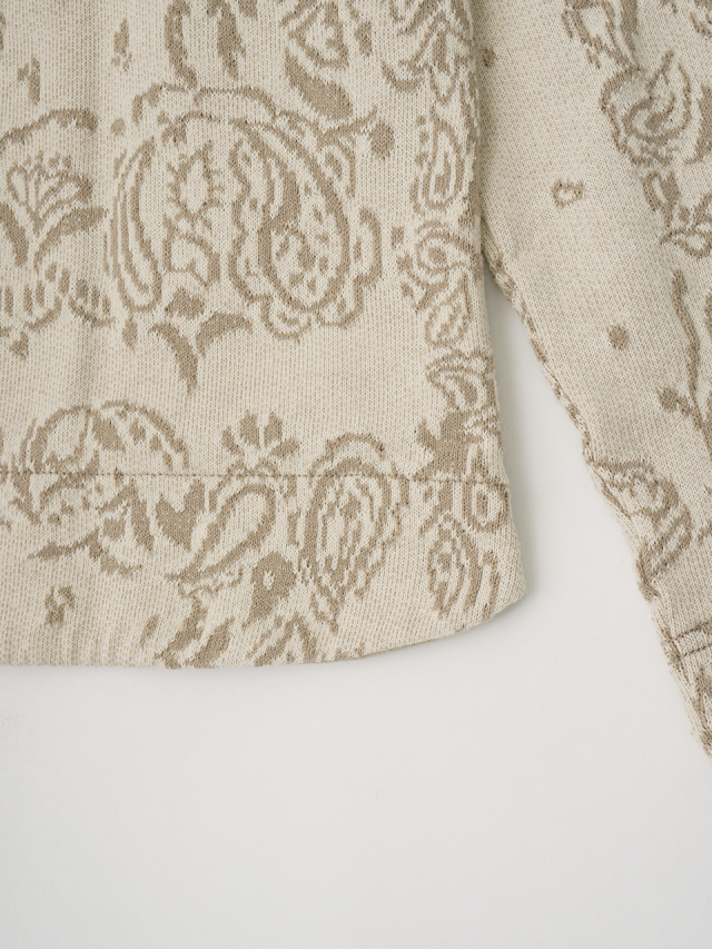 草花をバンダナ風のペイズリー柄にし、ジャガード編みで表現しました。