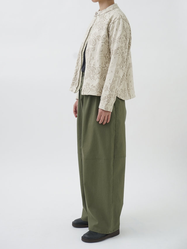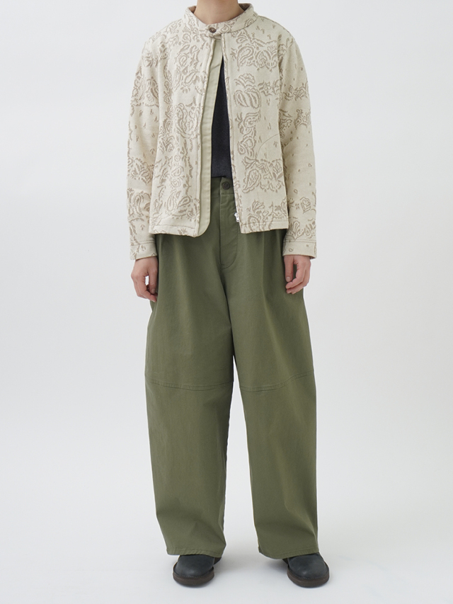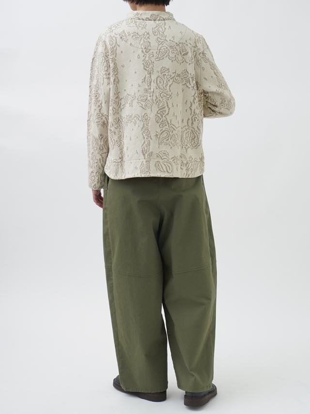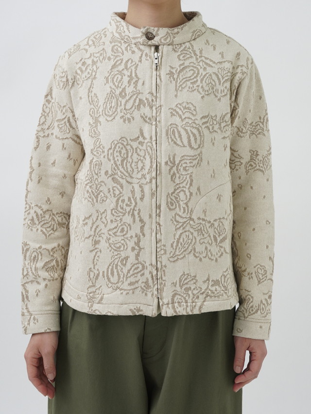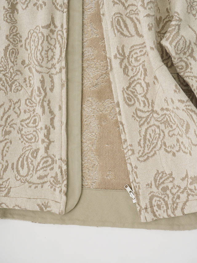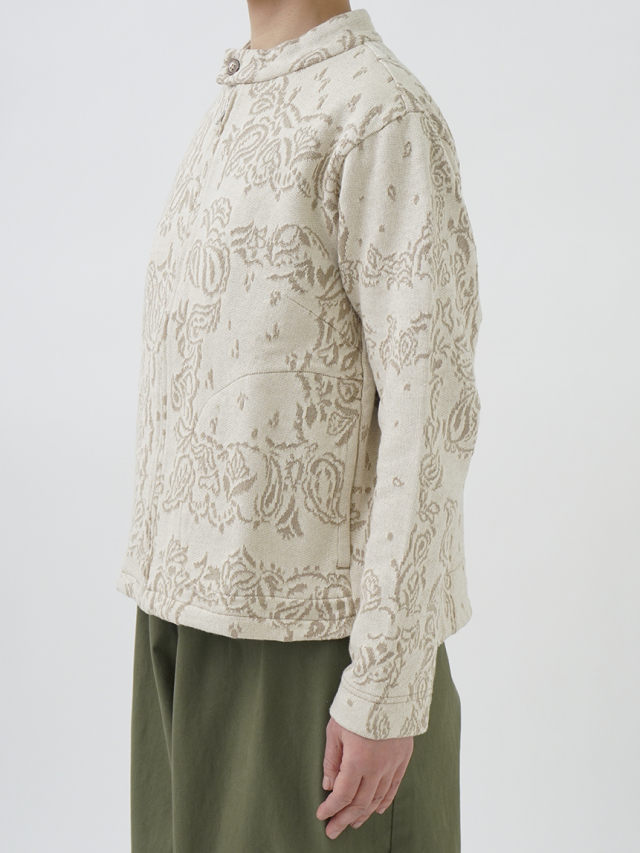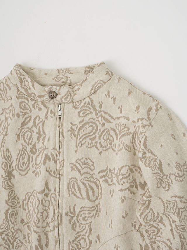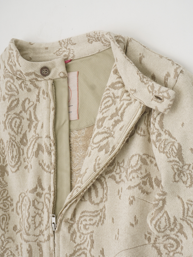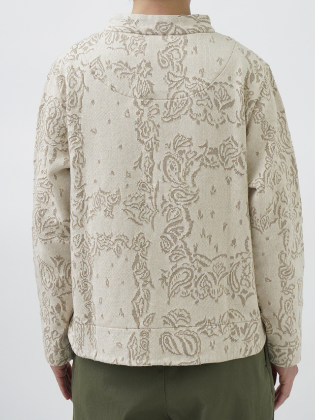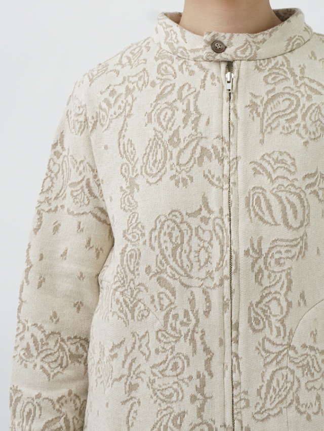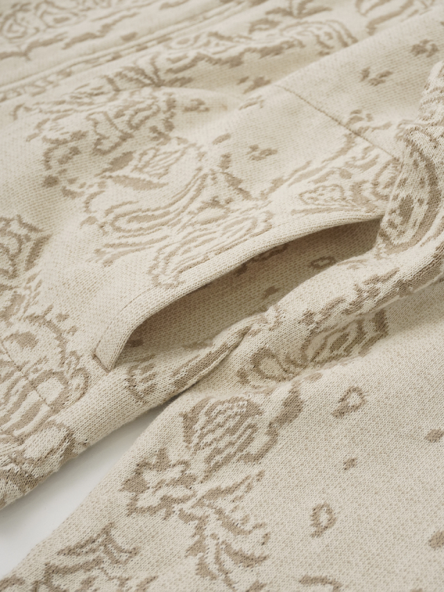 草花をバンダナ風のペイズリー柄にし、ジャガード編みで表現しました。