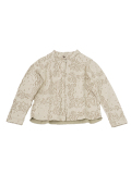 柄の印象を引き締める、ファスナーあきのブルゾン風のデザイン。