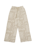 ウエストはリラックスしたゴム仕様の、身体のラインを拾いにくい落ち感のあるストレートシルエット。
