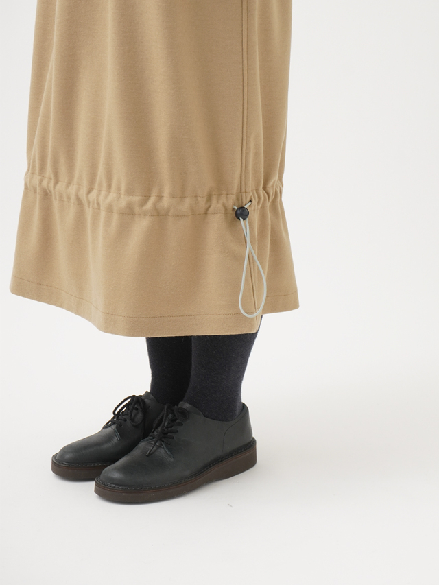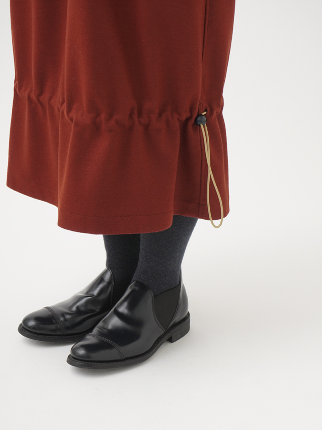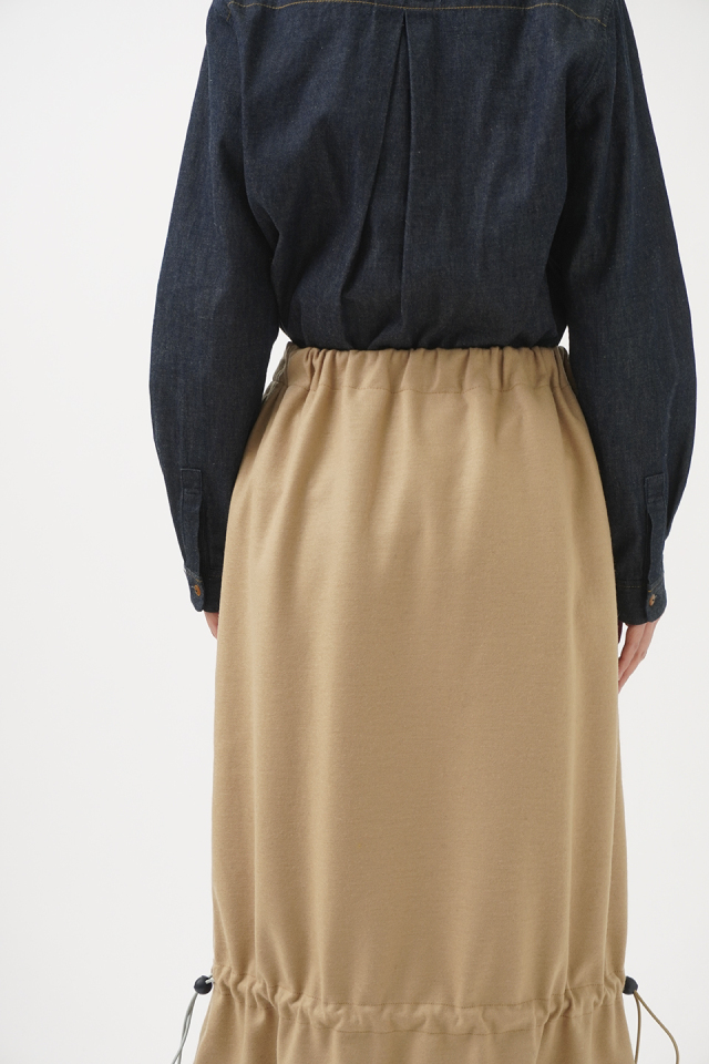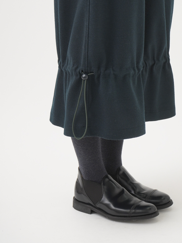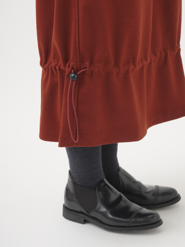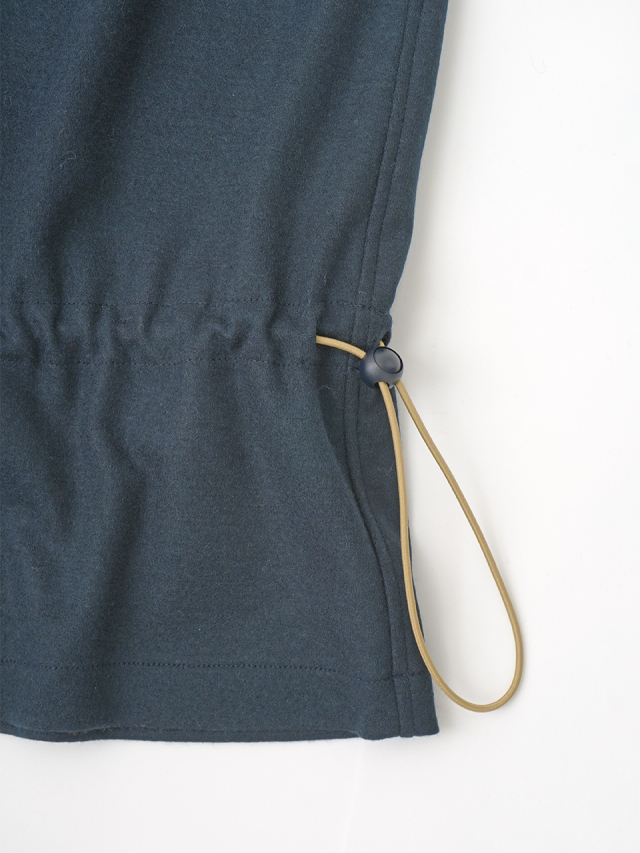 裾のドローコードを絞って、シルエットを変化できるデザインです。