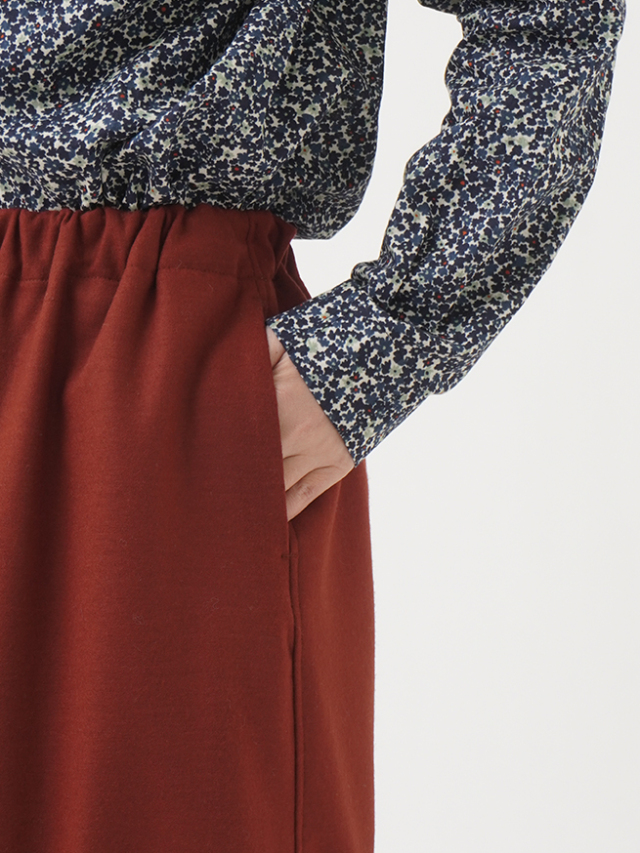 密度があり目の整った、圧縮ウール素材のスカート。
