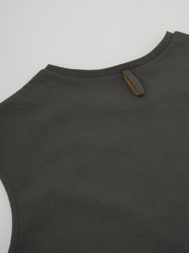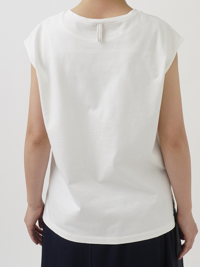 落ち着いた印象のネックラインで、一枚で着やすいフレンチスリーブのデザインです。
