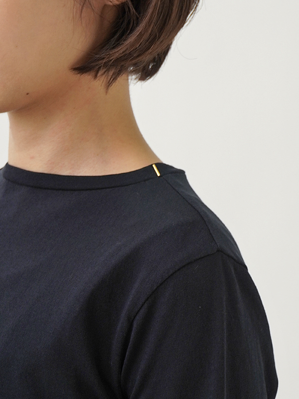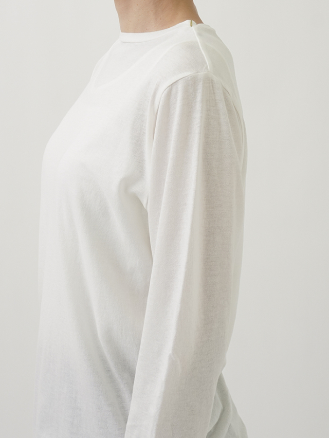 首元にやさしく添うモック襟の左襟元に、ビーズをあしらいました。