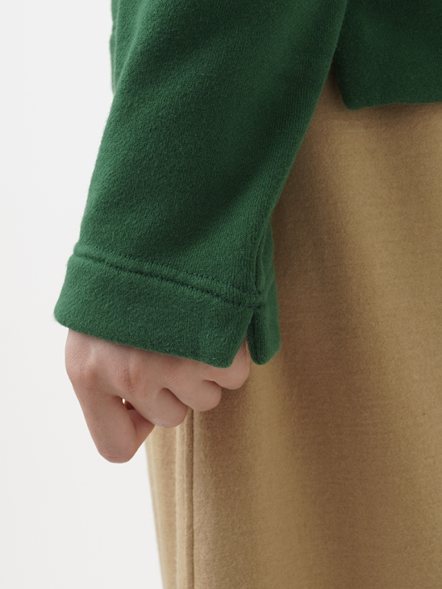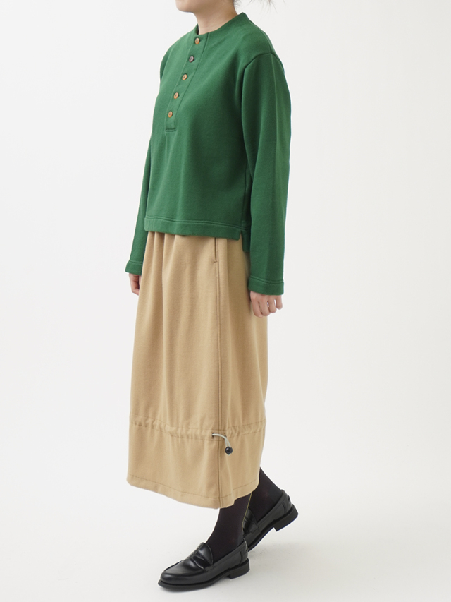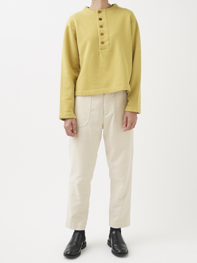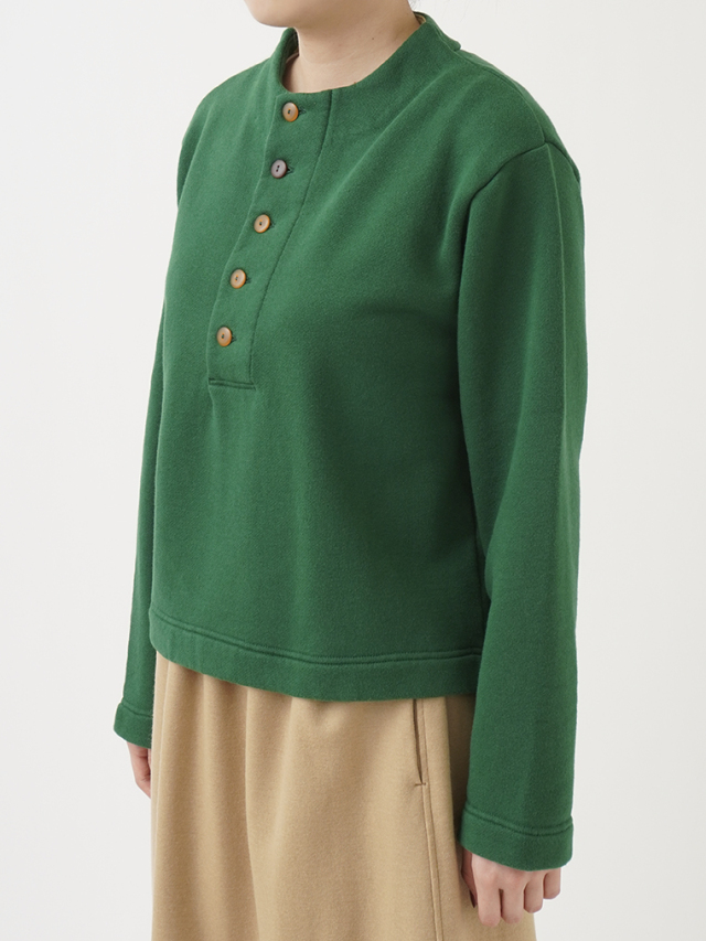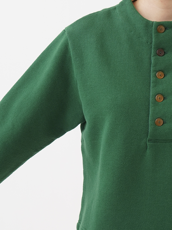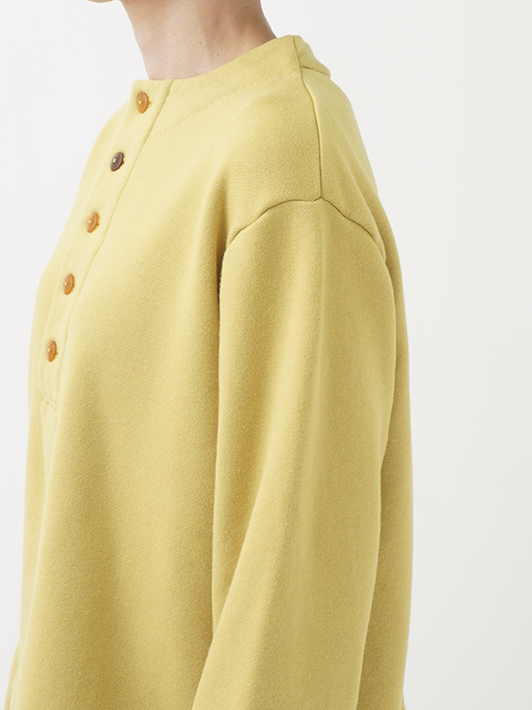 第2ボタンの色を変え、首元にアクセントが加わるヘンリーネックに仕立てました。