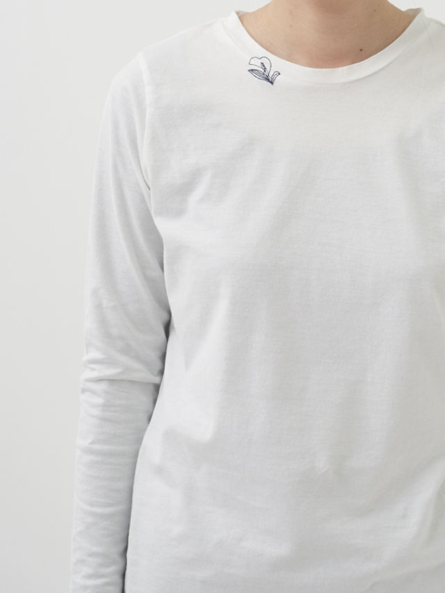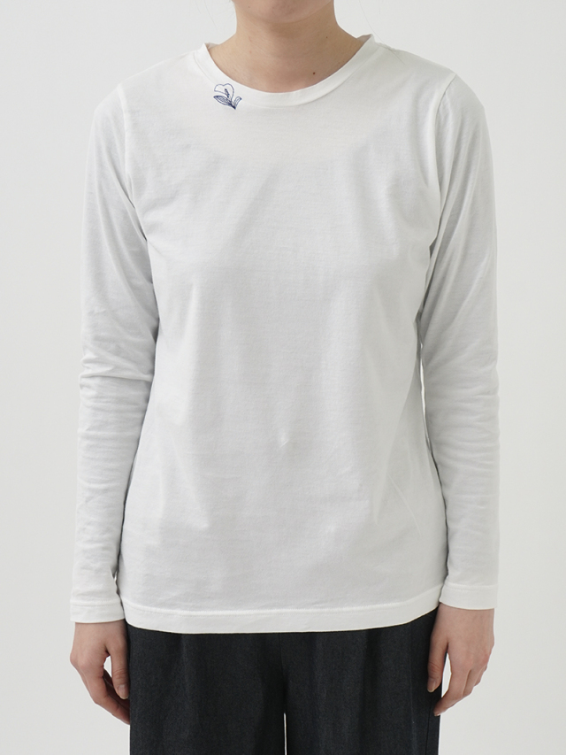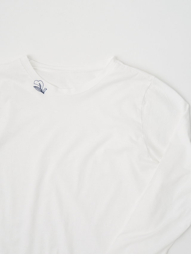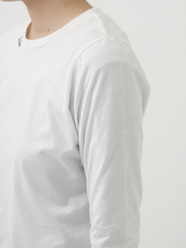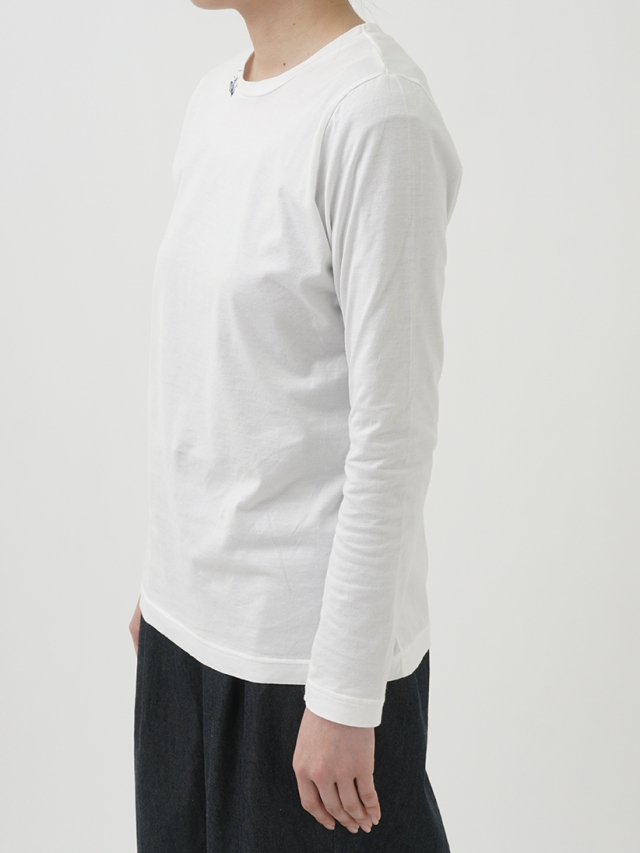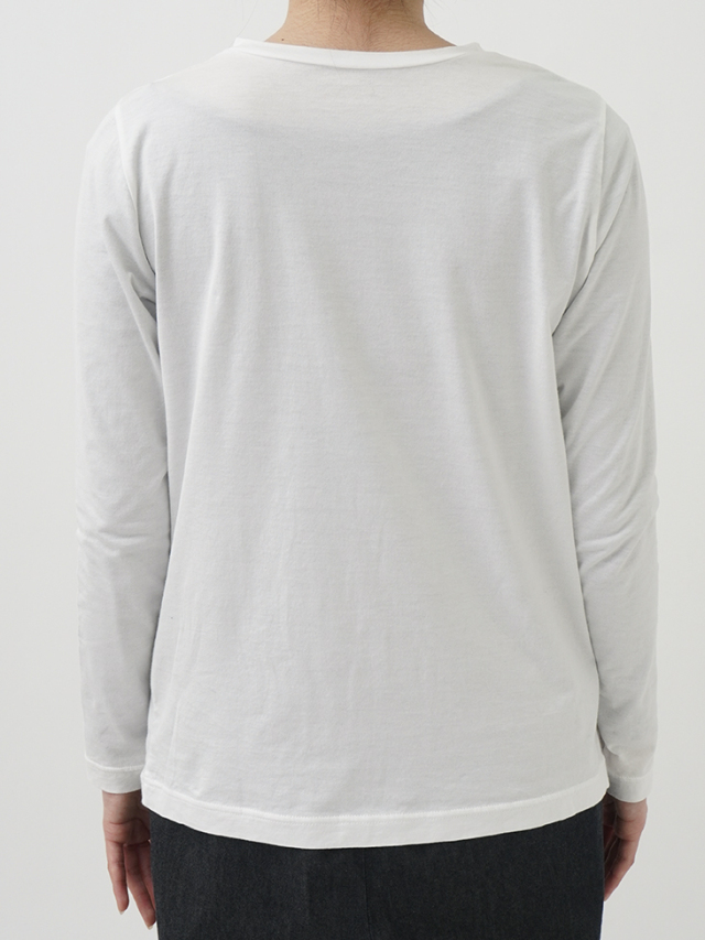 なめらかで自然な光沢が特長の、繊維の長い超長綿を使用した丸首長袖Tシャツ。