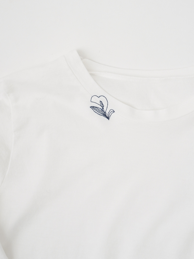 襟元に、季節が進んでつぼみがふくらんでいく様を刺繍で表現しました。