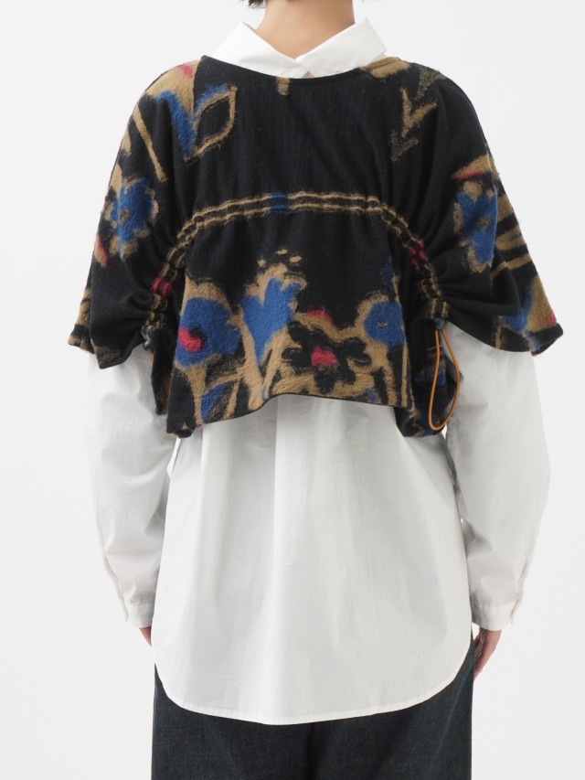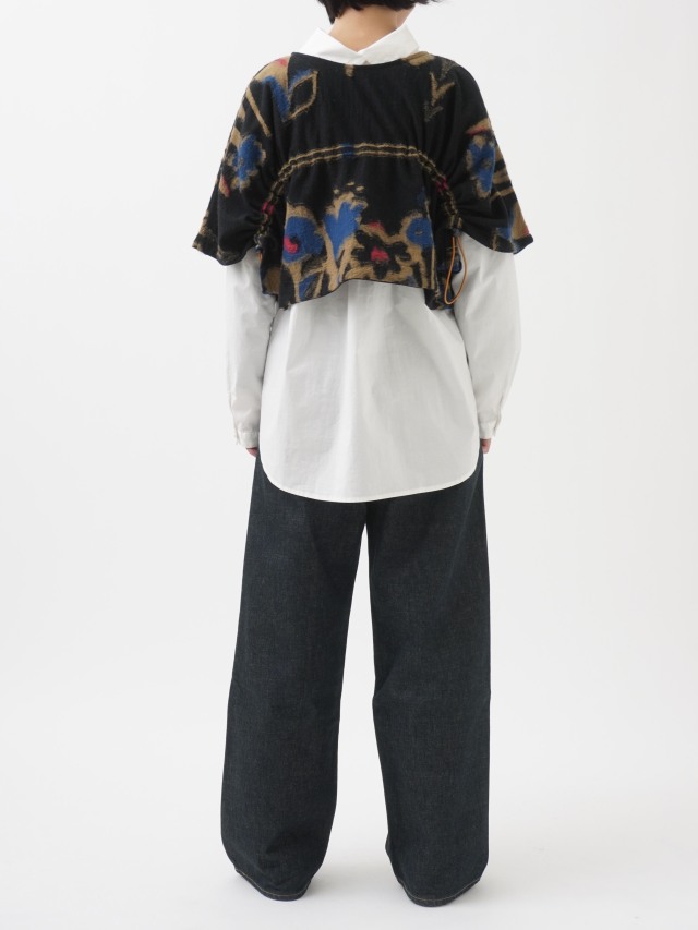 ドローコードでシルエットを変えられる、前後着られる仕様のベスト。
