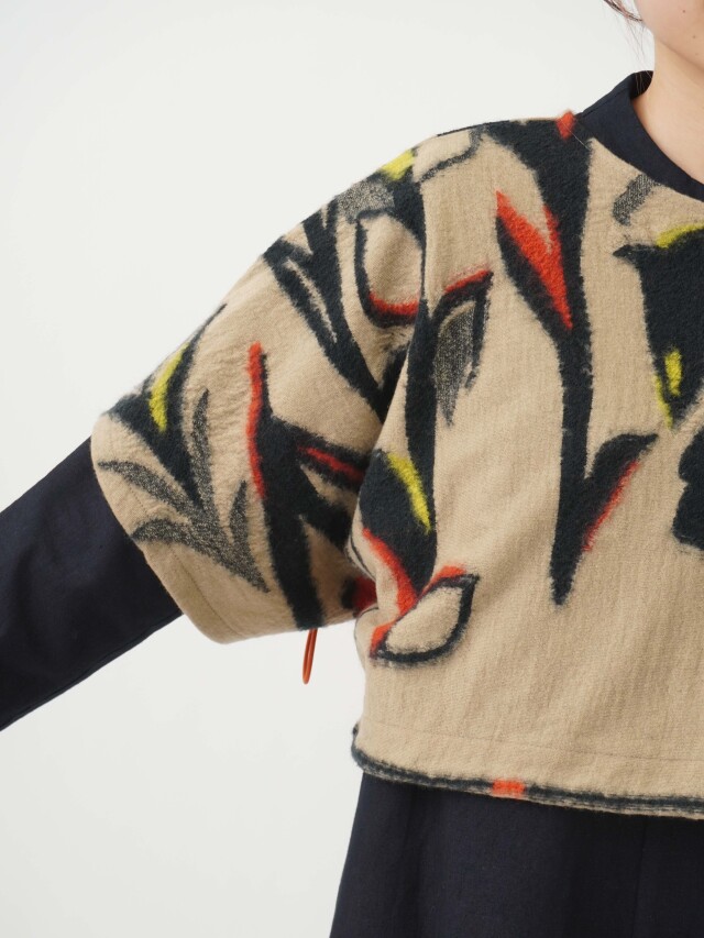 心おどるような来る春が待ち遠しい、さまざまな花が咲く様子をジャガード編みで表現しました。
