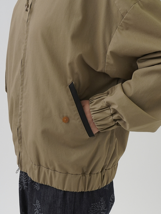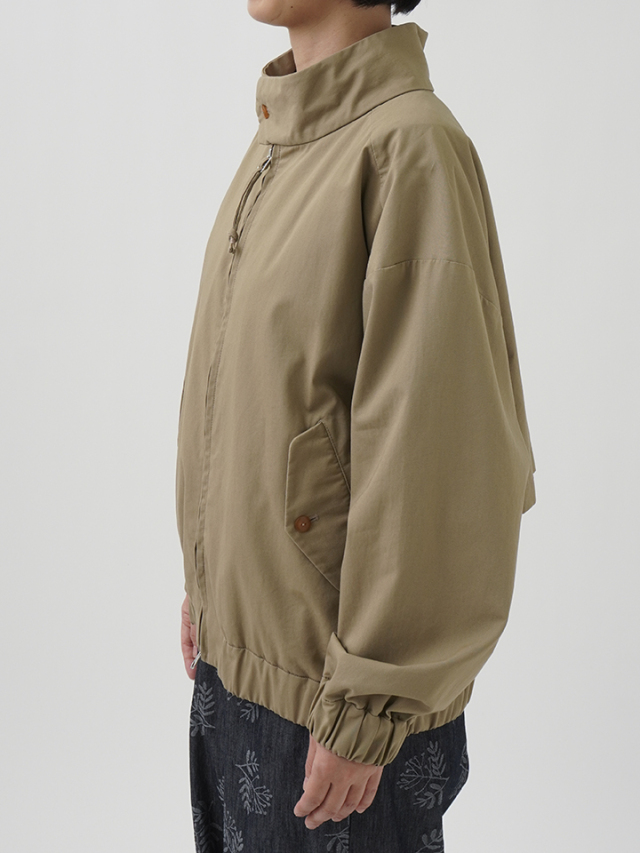 タテ糸に強撚のオーガニックコットンを使用した、ウェザー素材のブルゾン。