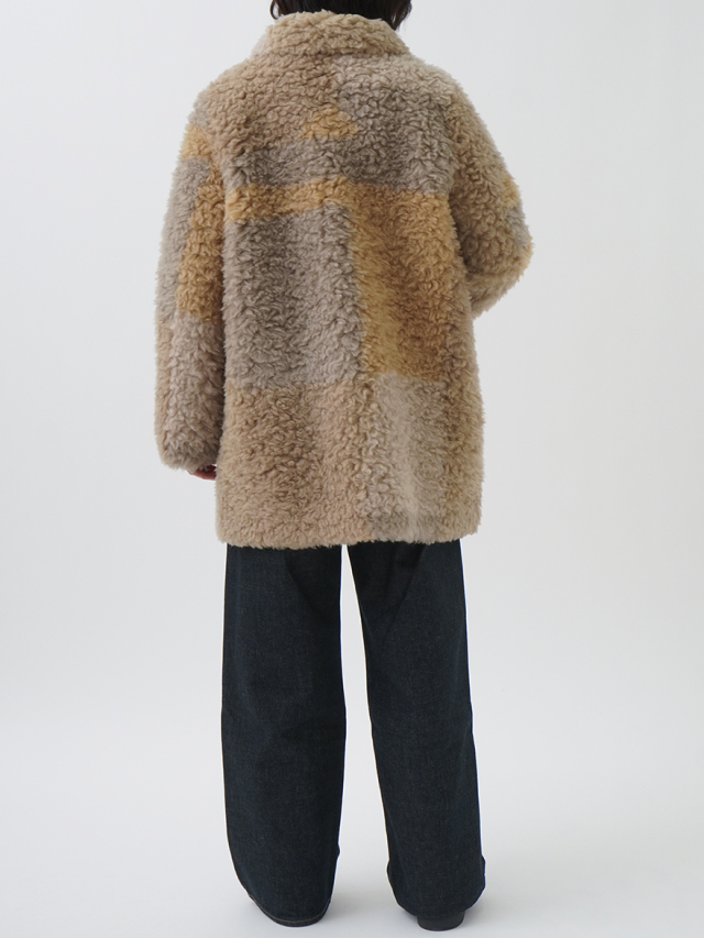 表地:ボア 毛‐100% 表地ベース:ポリエステル‐100% 背裏・襟・見返し・ポケット袋布:ポリエステル‐93% ポリウレタン‐7%