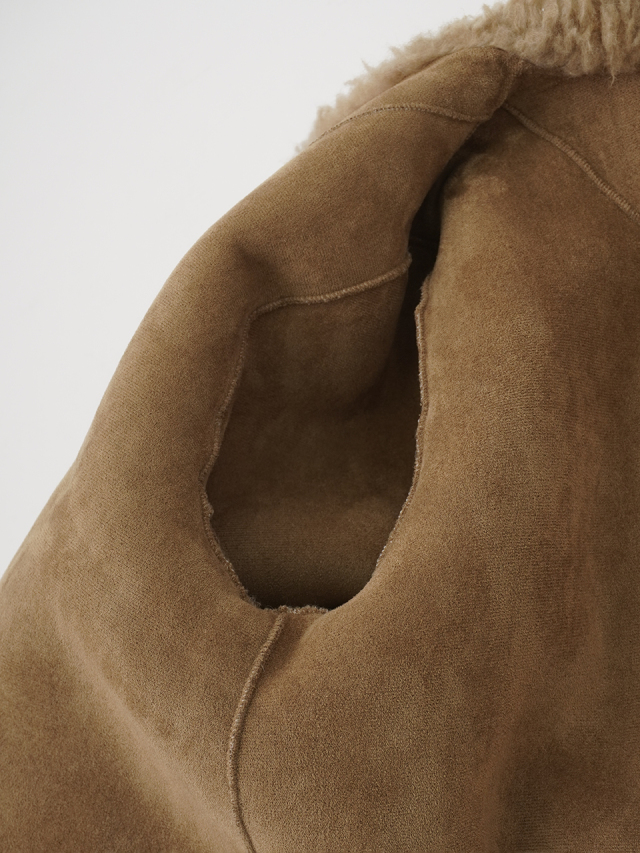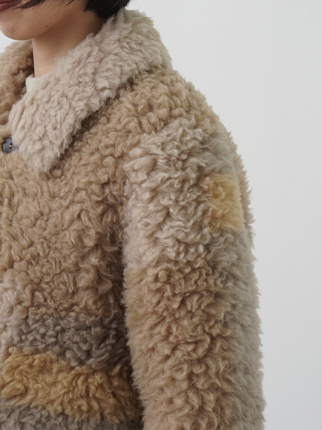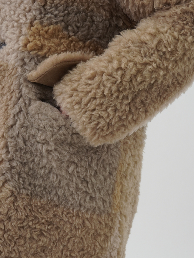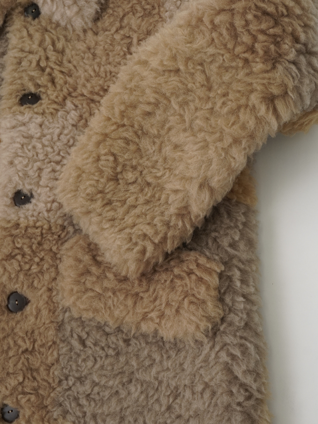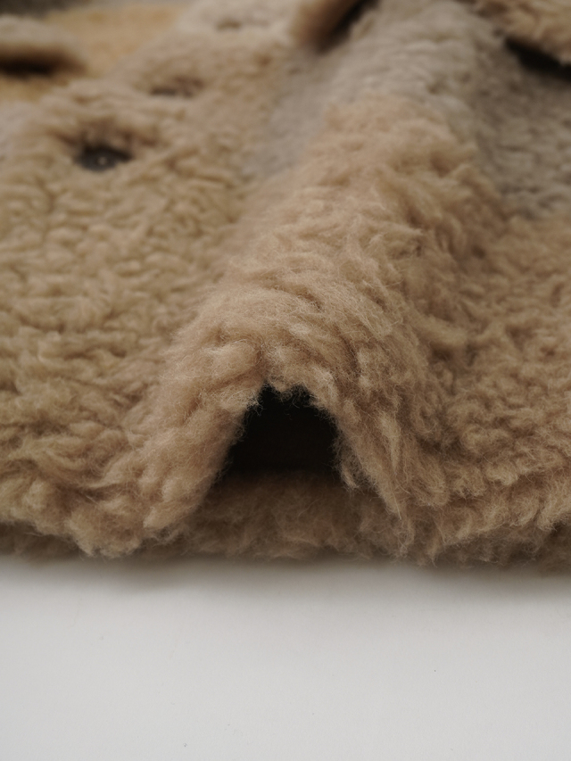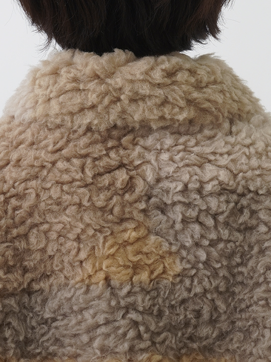 着心地も見た目もあたたかなウール100%の上質なボア素材は、長時間着ても疲れにくい軽さと、しっかりとした保温性で身体を包み込みます。