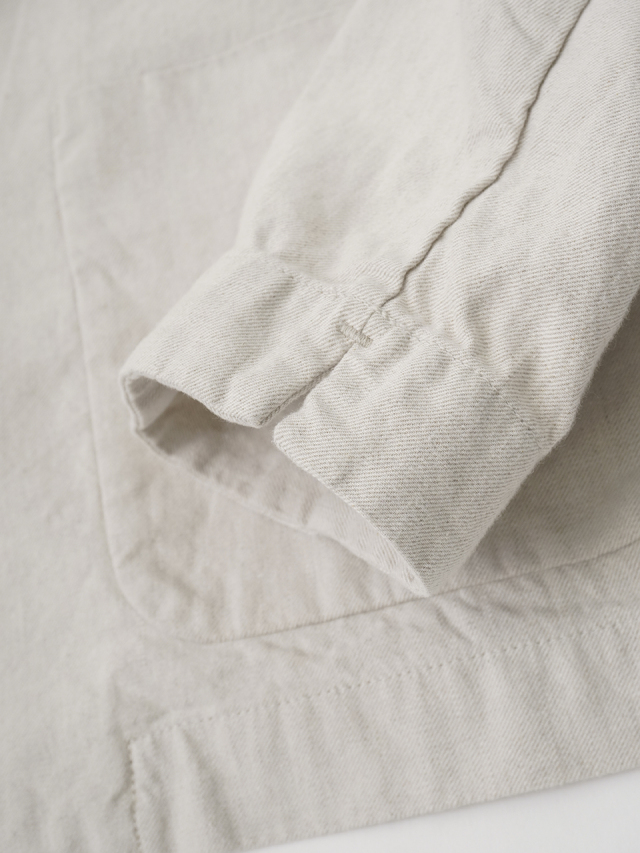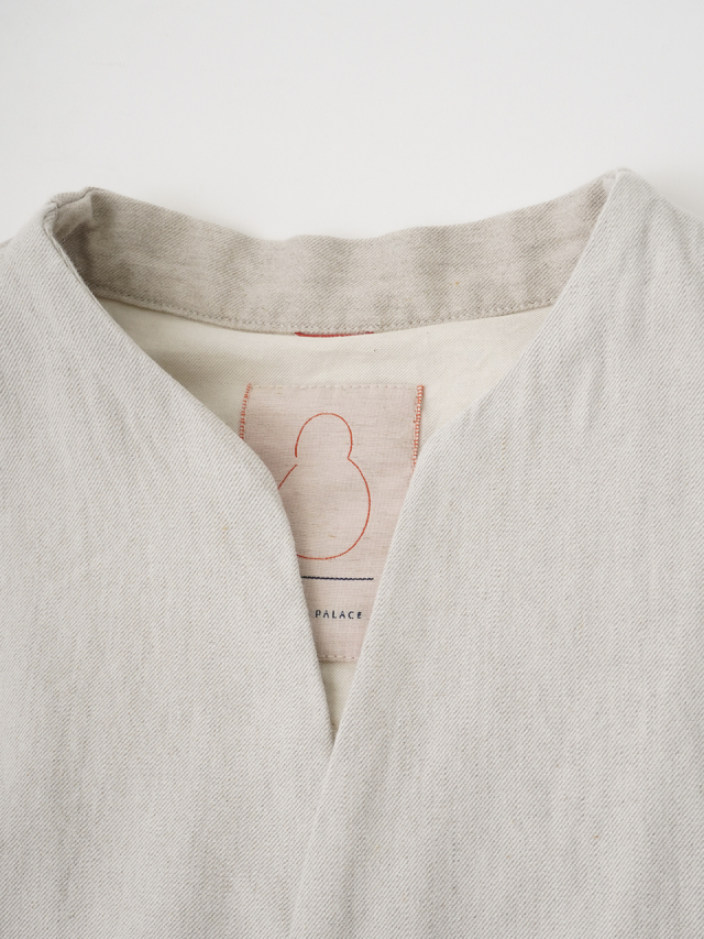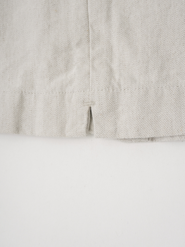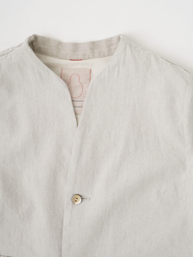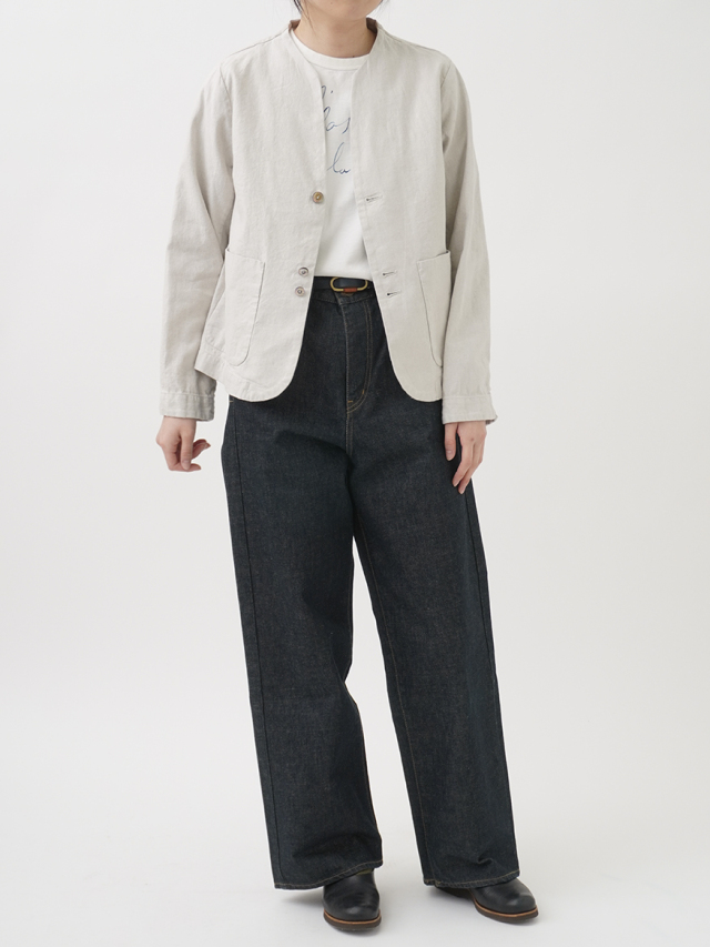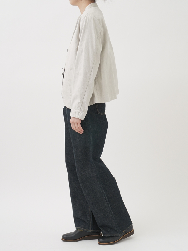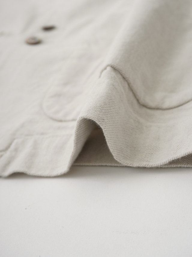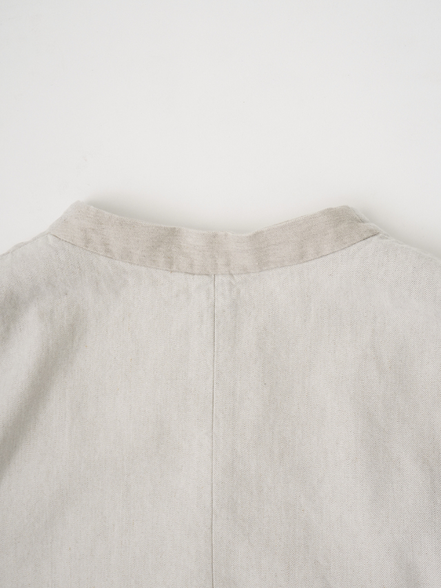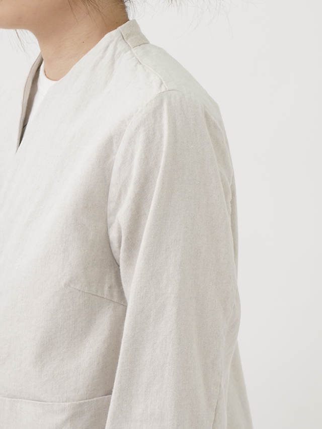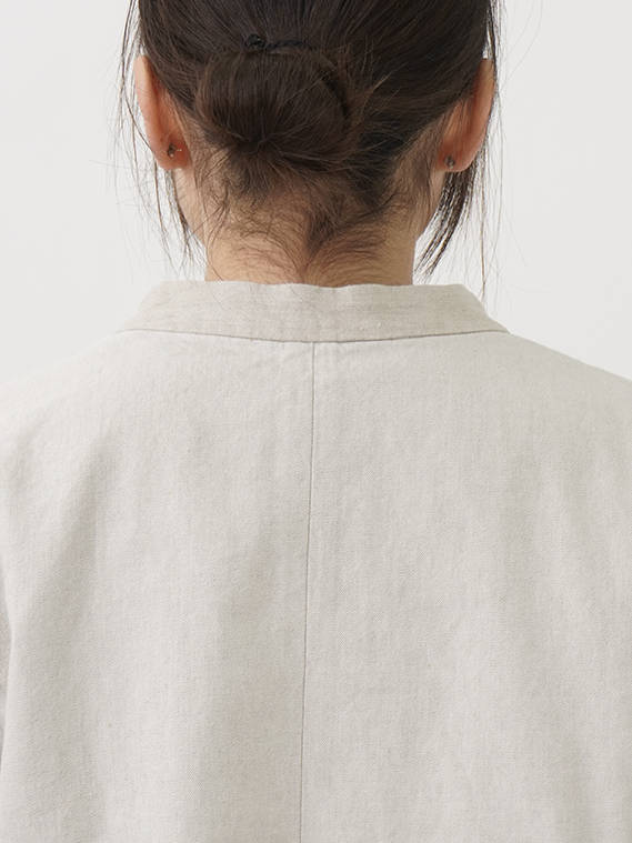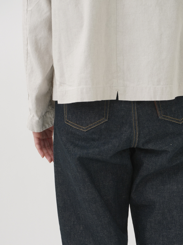 タテ糸にリネン、ヨコ糸にコットンの糸を使用し、高密度に織った、しなやかさと張り感のバランスが良い生地のジャケット。