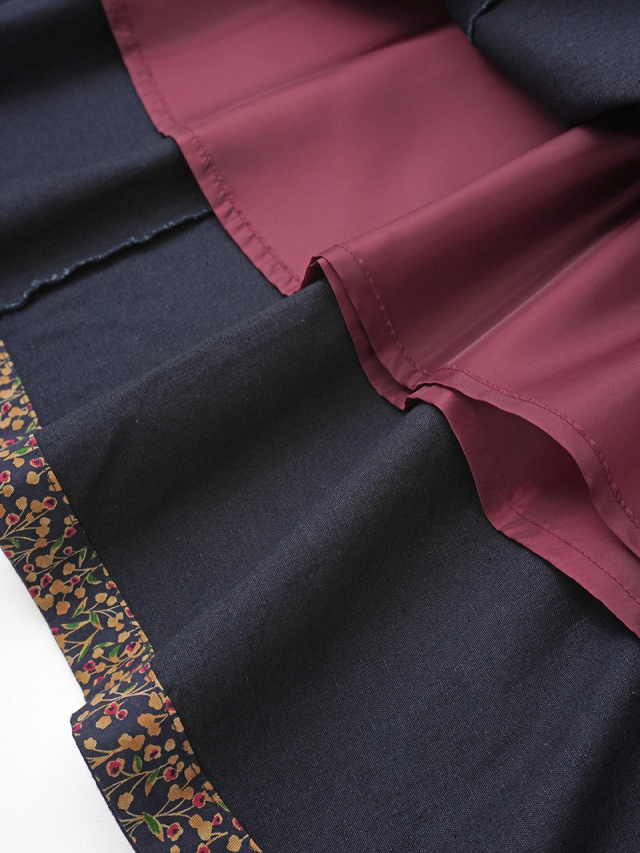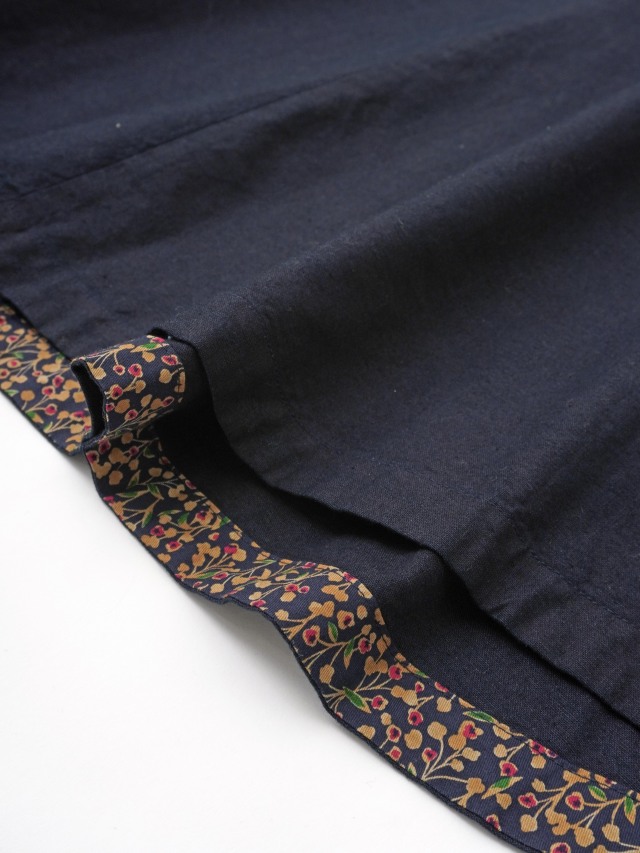 ポケット口や、裾内側、センターバックループに山茶花柄を別地にあしらいました。