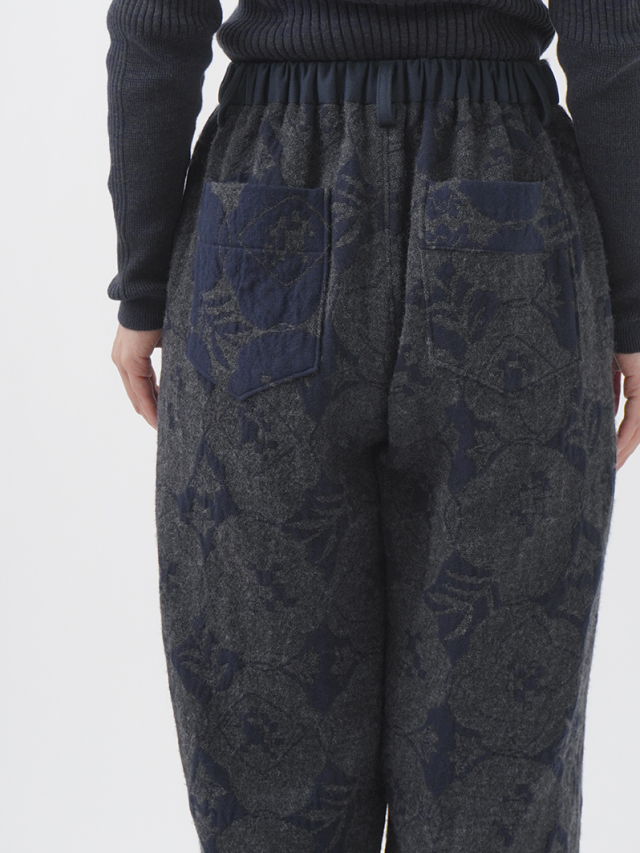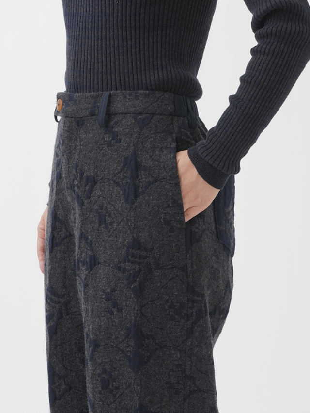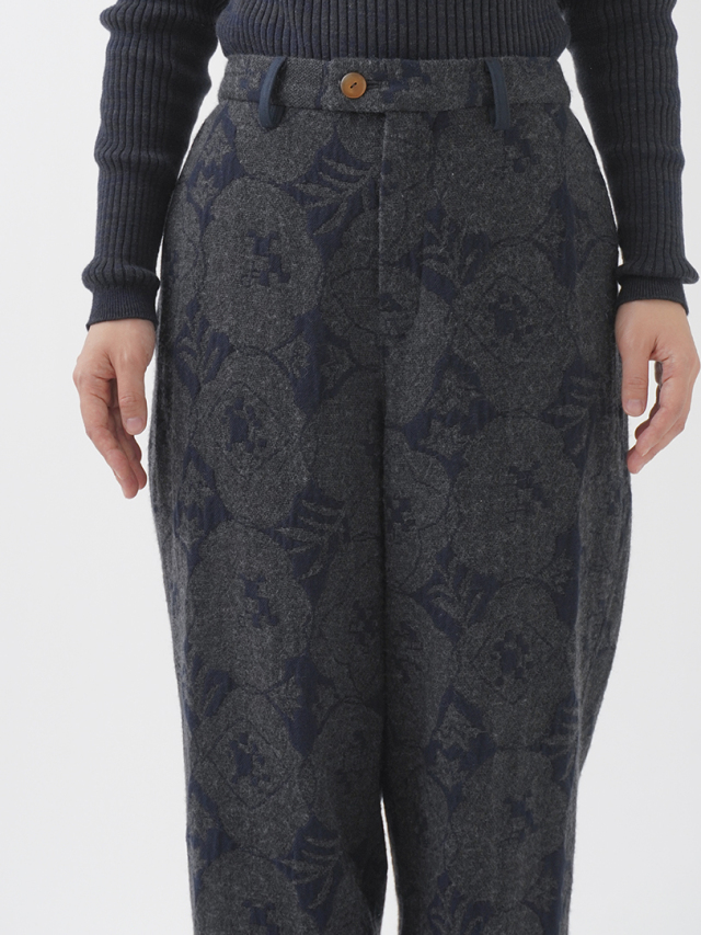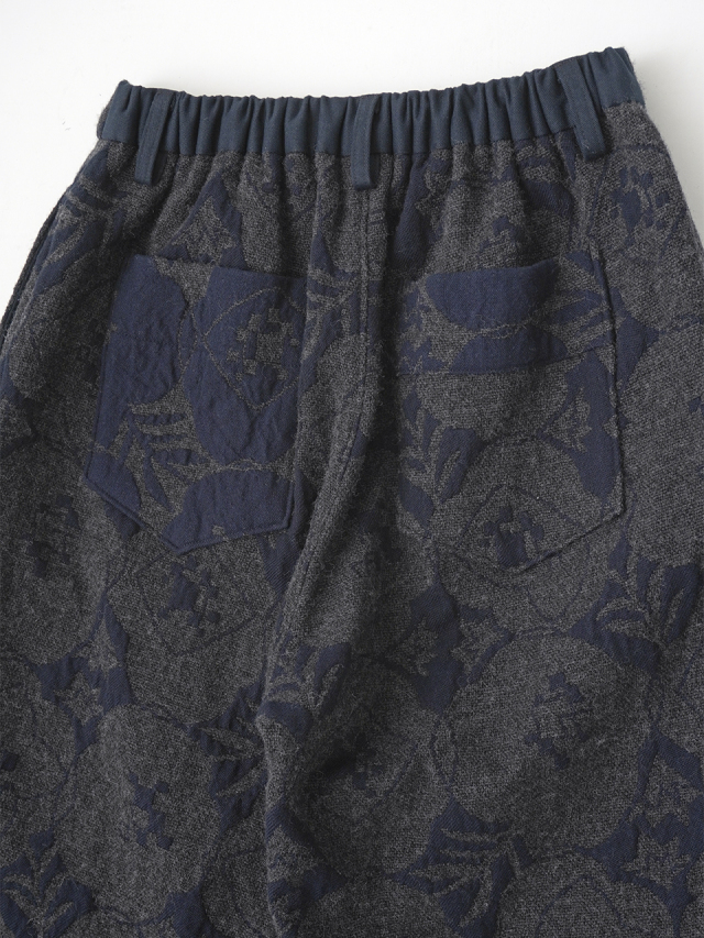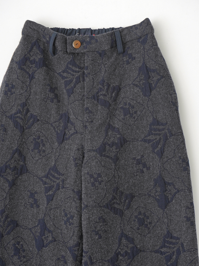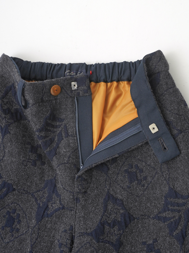 秋を代表する花のひとつ「秋海棠」をモチーフに、ジャガード織で表現したパンツ。