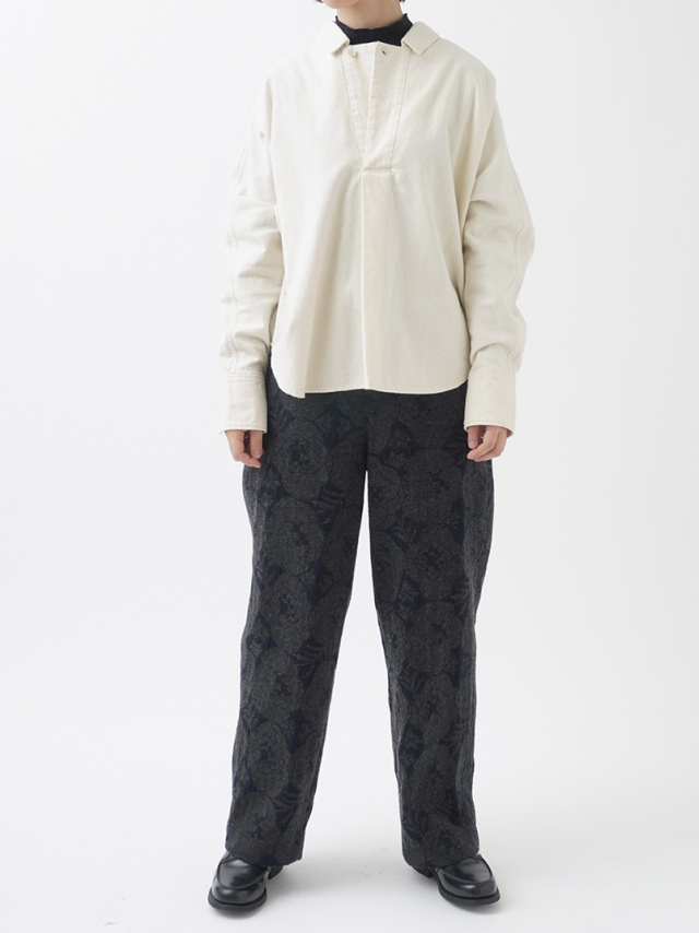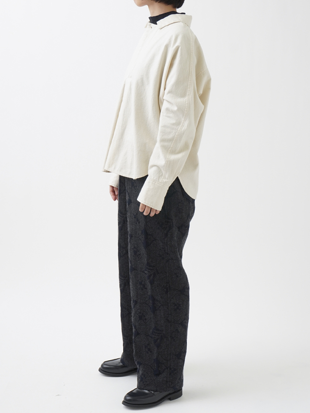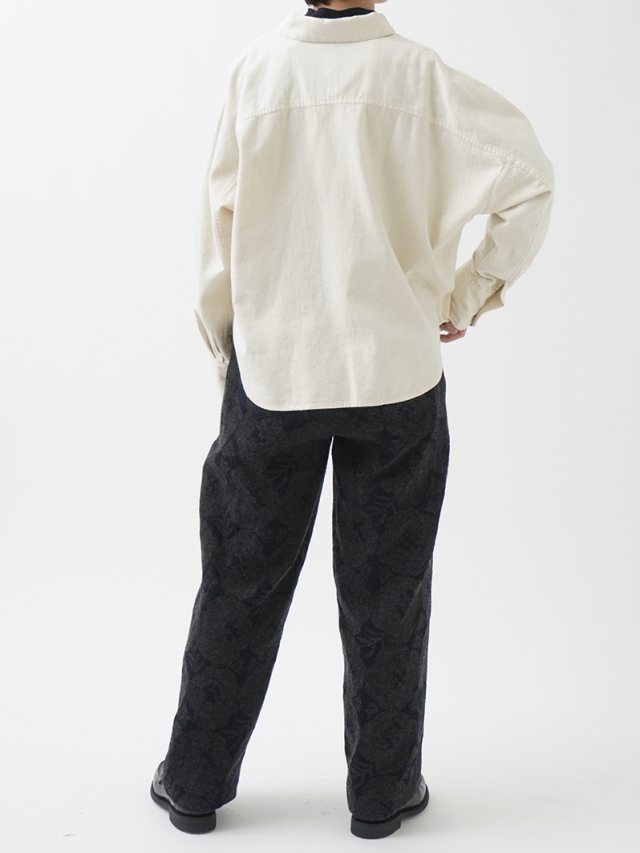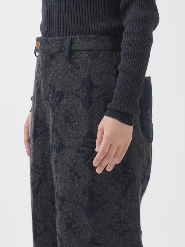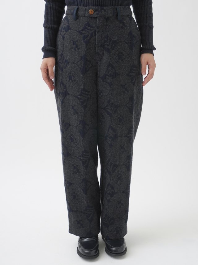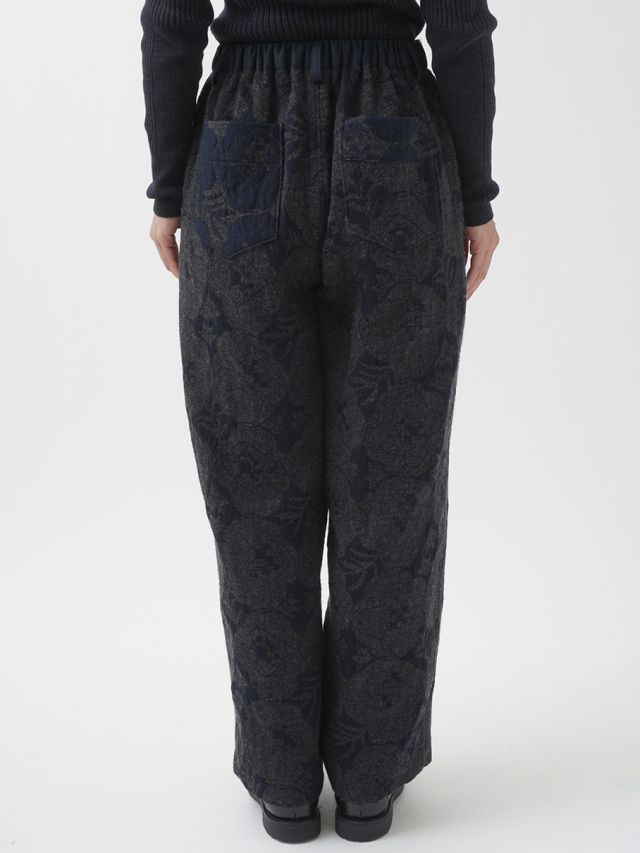 秋を代表する花のひとつ「秋海棠」をモチーフに、ジャガード織で表現したパンツ。
