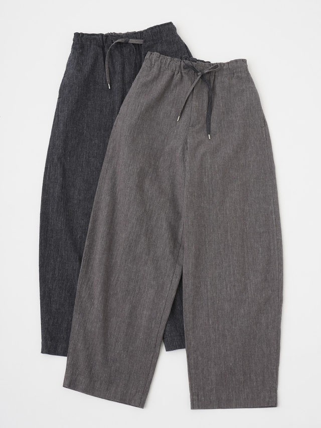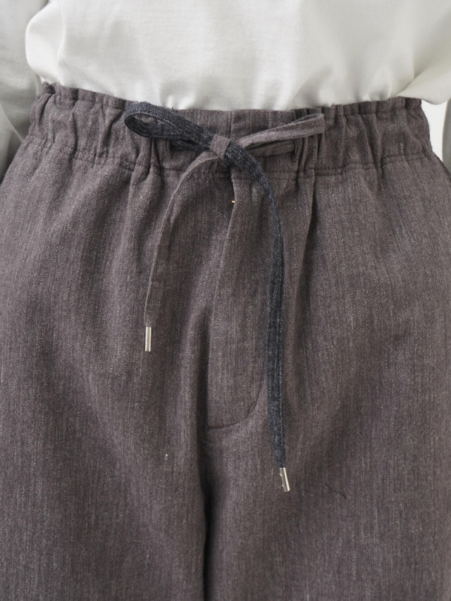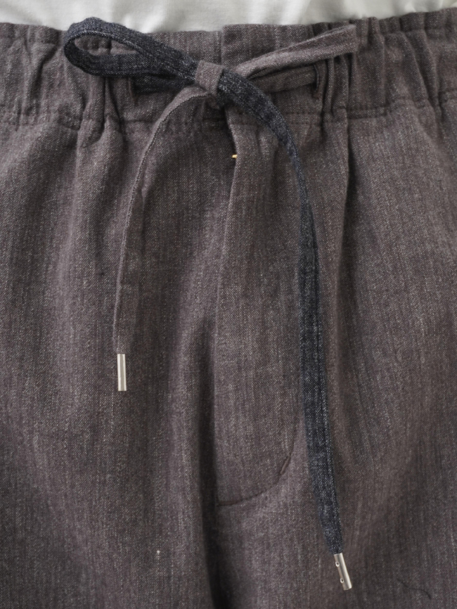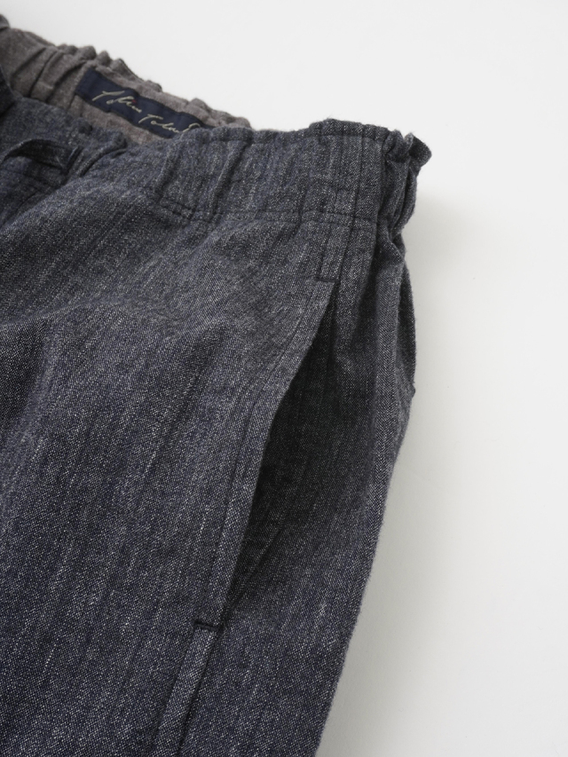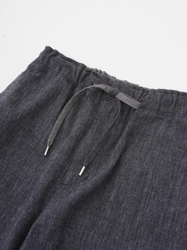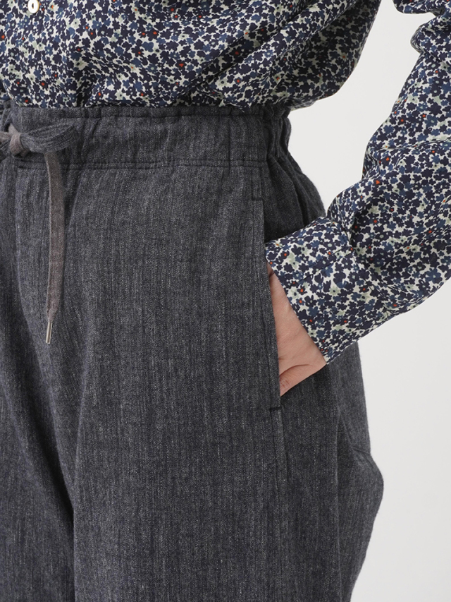 タテ糸に、綿とオーストラリア産のエクストラファインメリノを使用したラフィウール糸、ヨコ糸にコットンのラフィ糸を使用した杢調の生地です。
