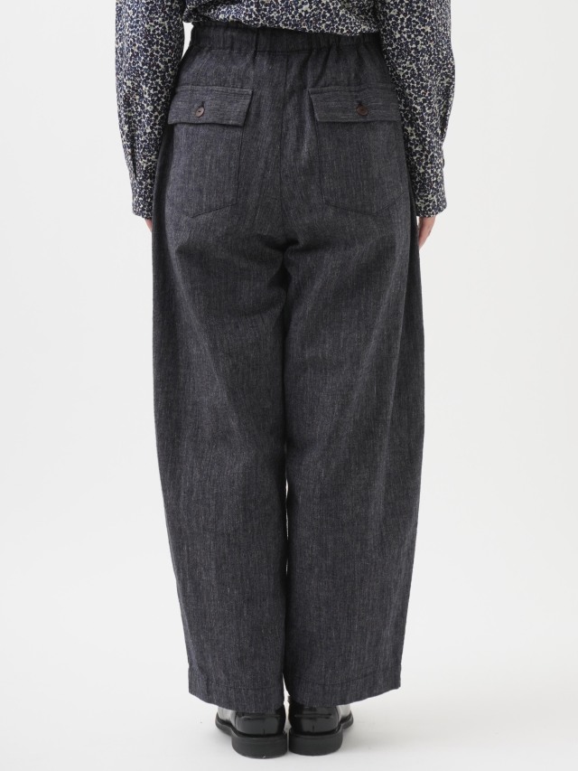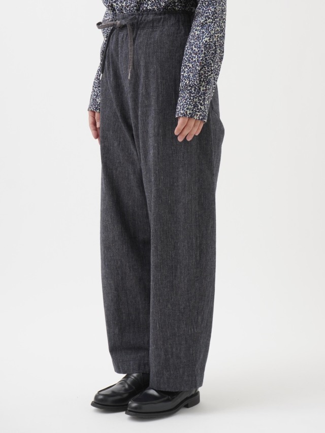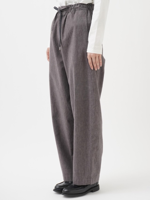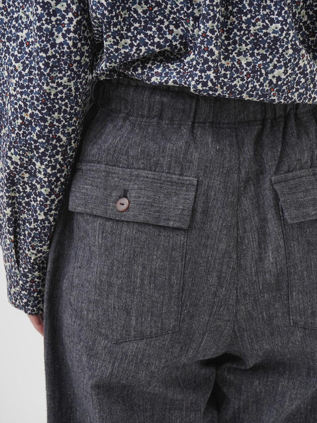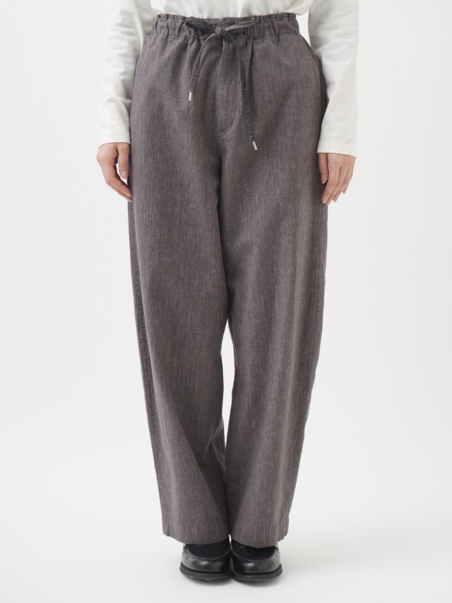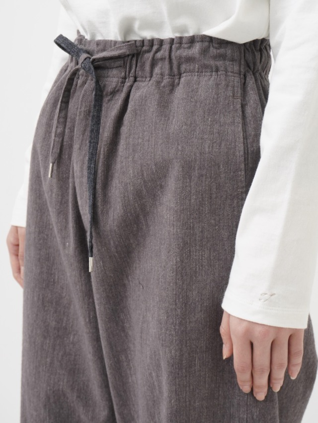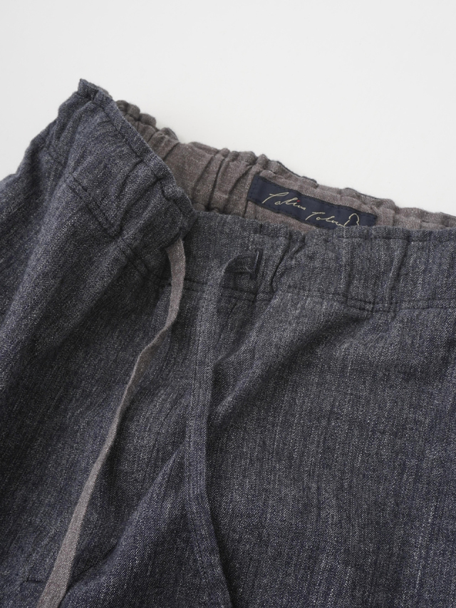 タテ糸に、綿とオーストラリア産のエクストラファインメリノを使用したラフィウール糸、ヨコ糸にコットンのラフィ糸を使用した杢調の生地です。