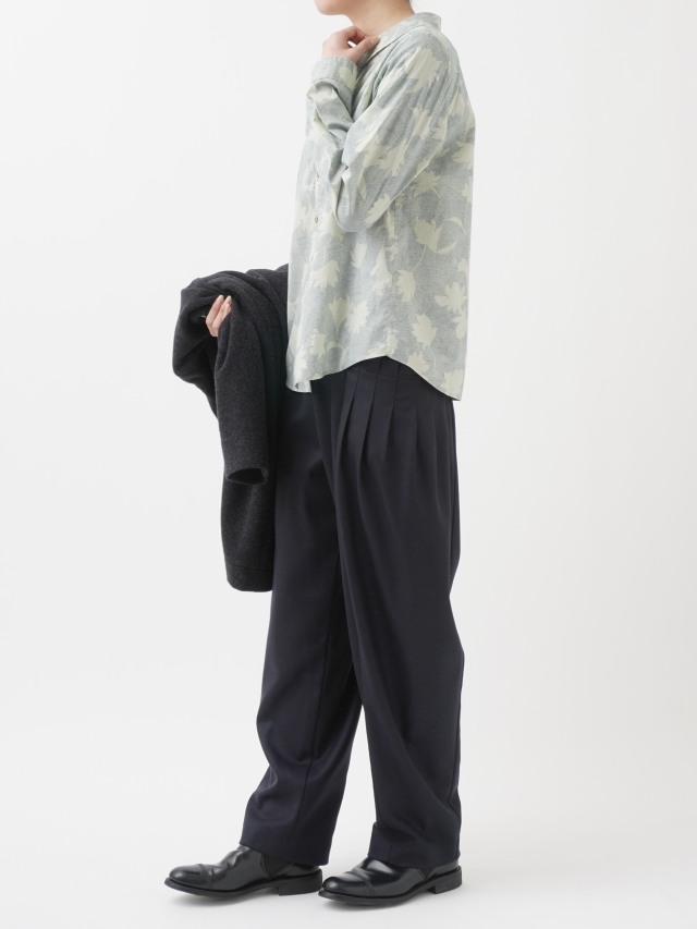 通常よりタテ糸の本数を増やして高密度に織った生地は、しなやかでほどよいハリを兼ね備え、上品な光沢と落ち感のある風合いです。