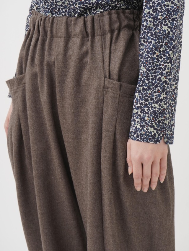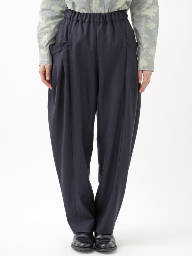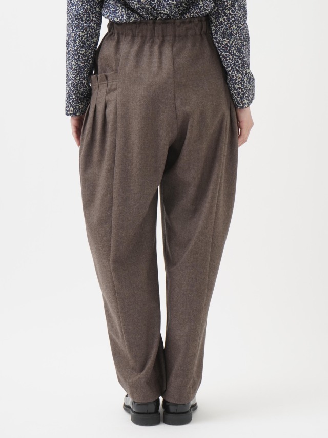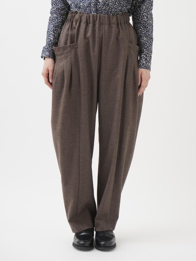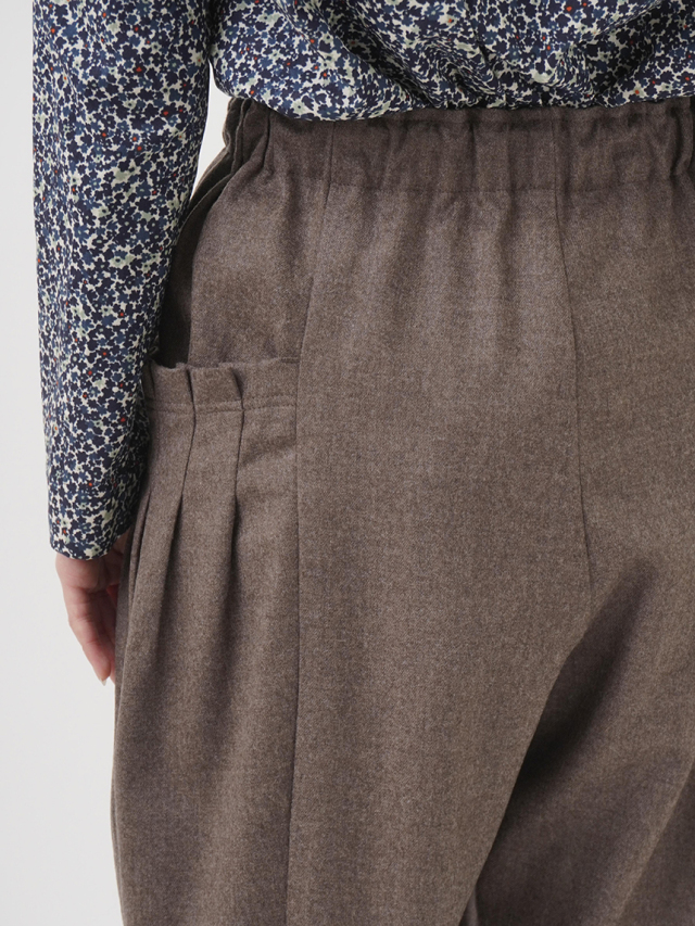 立体感のあるポケットがユニークな、ハイカウントフラノ素材のテーパードパンツ。