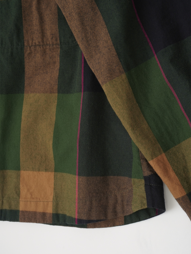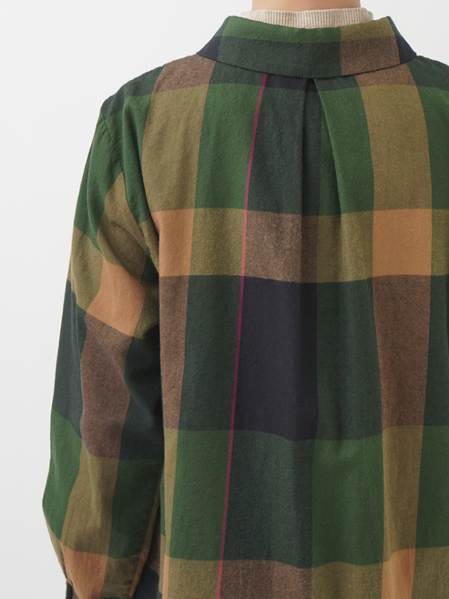 ネイビー、グリーン、キャメル、ポイントにピンクを使った滋味豊かな雰囲気のブロックチェック。