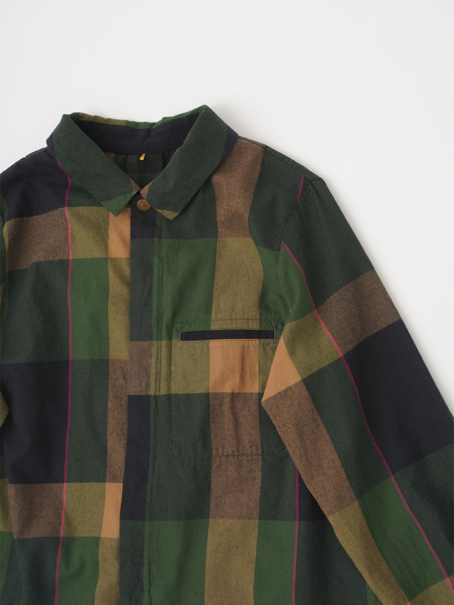 襟こし部分、ポケット口部分に別地を使用し、アクセントに。