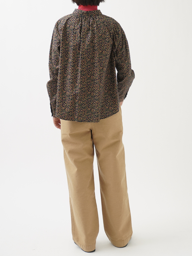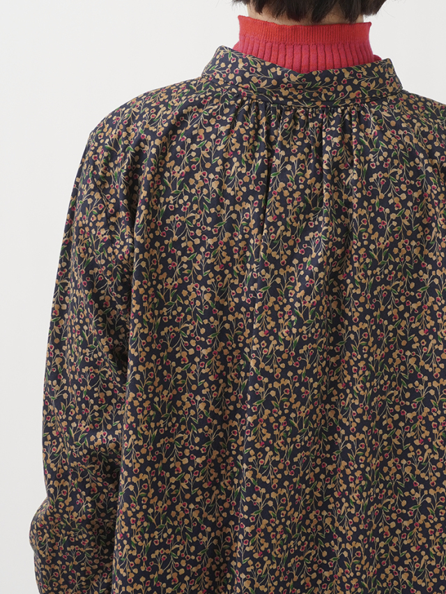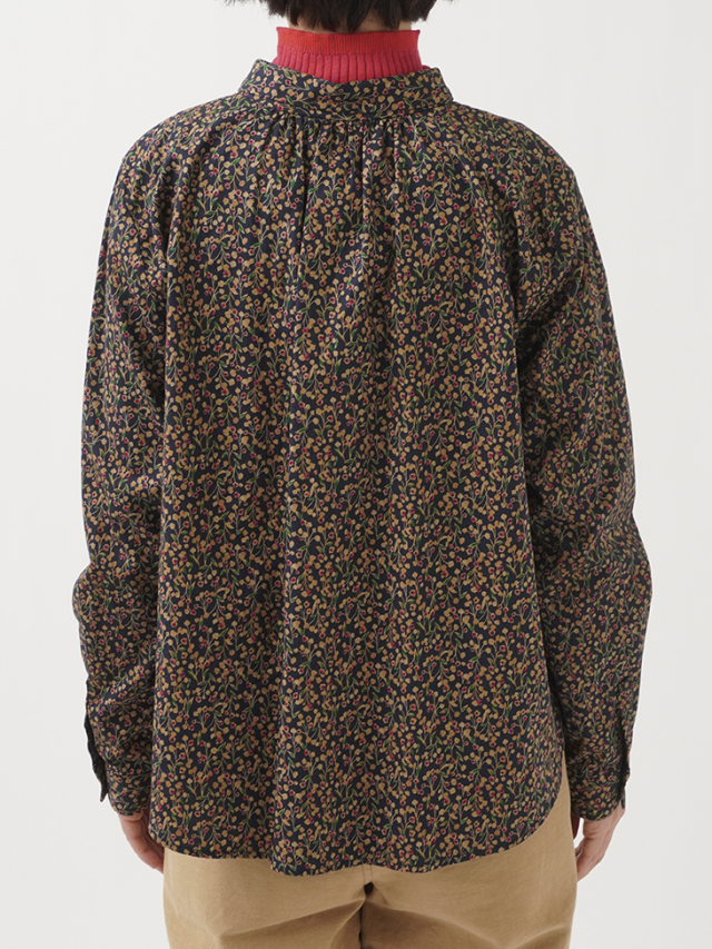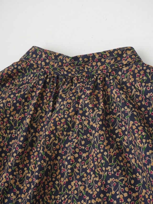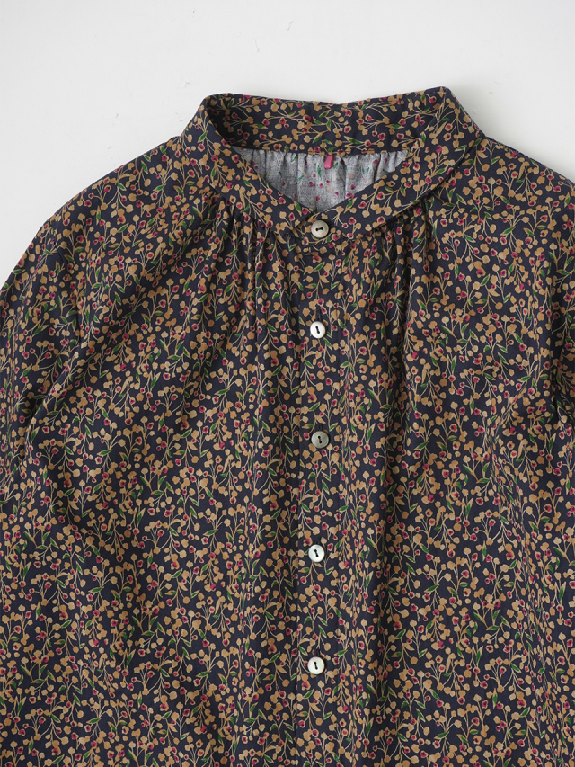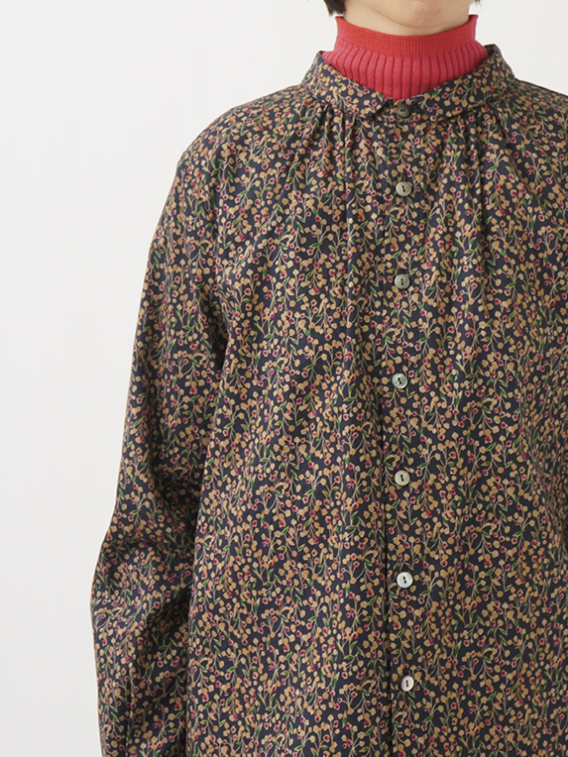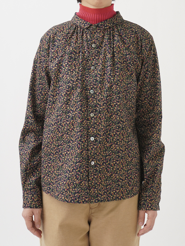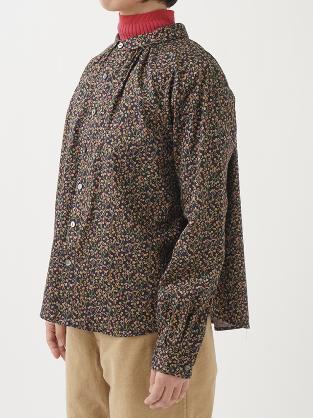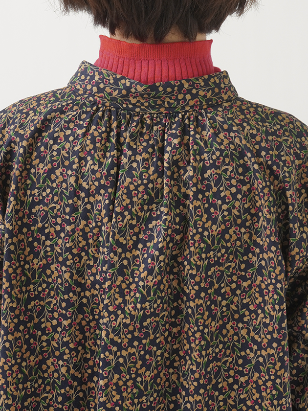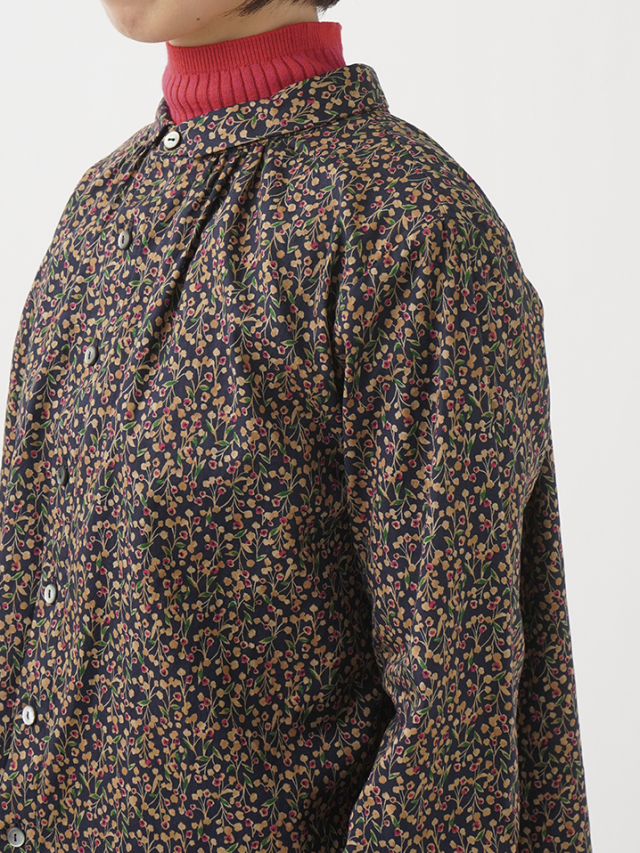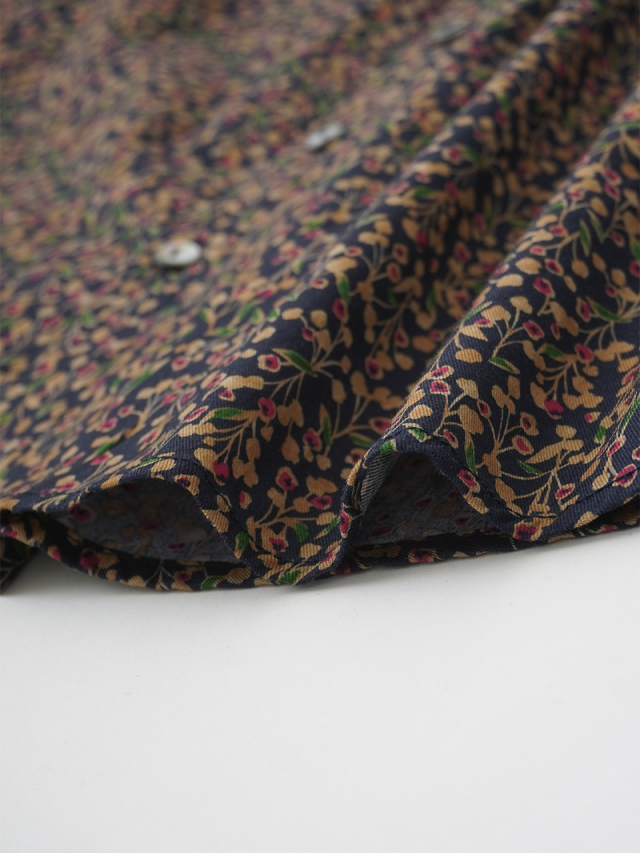 山茶花をモチーフにした柄のシャツ。
