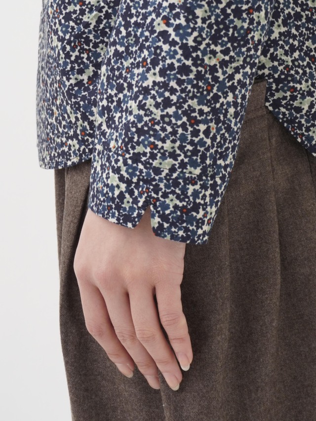 ニットと重ねたときに裾が出るよう長めの丈で仕立てました。