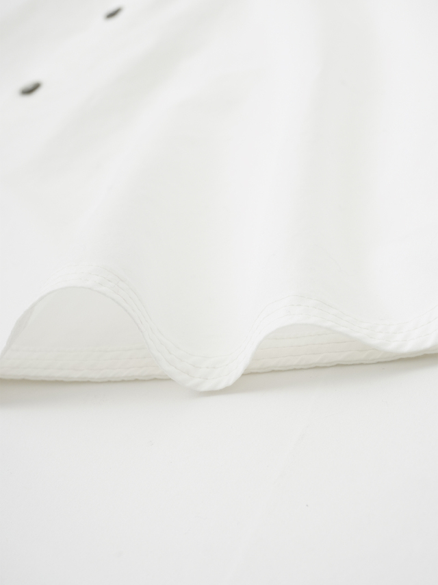 ふわりと広がるフレアーシルエットの裾と、袖口に薄いベージュの3本ステッチを施しました。