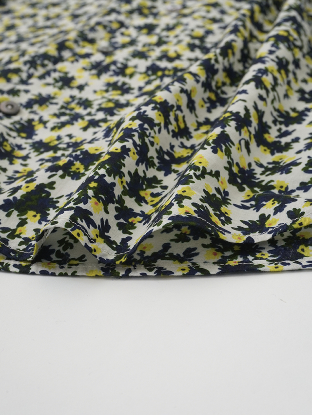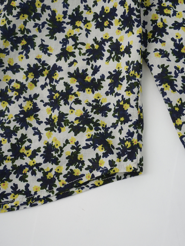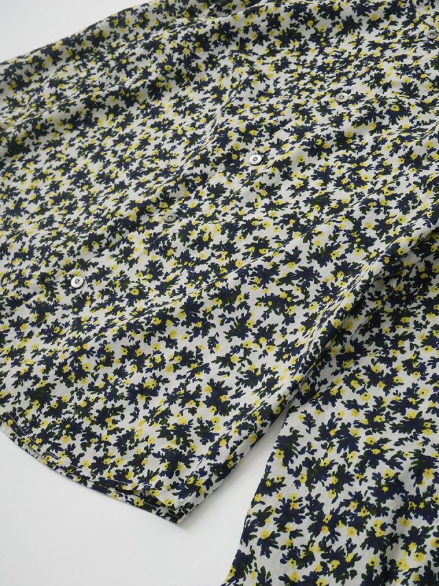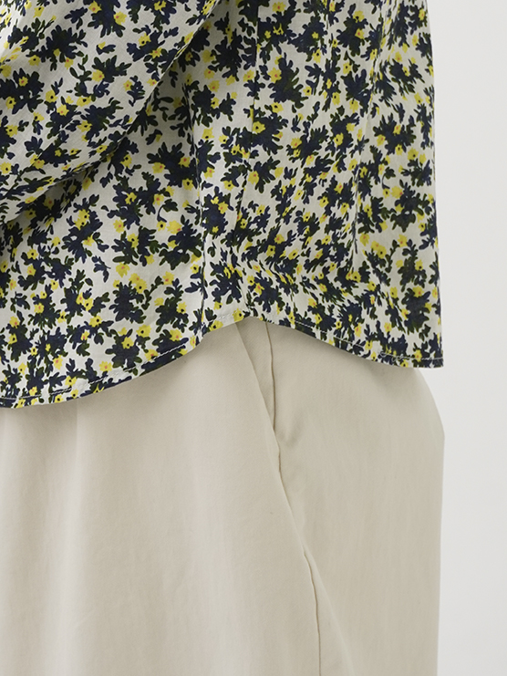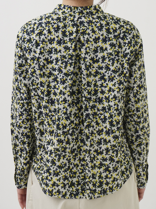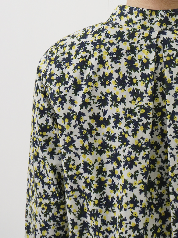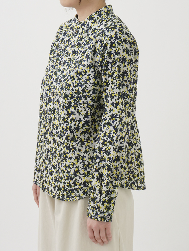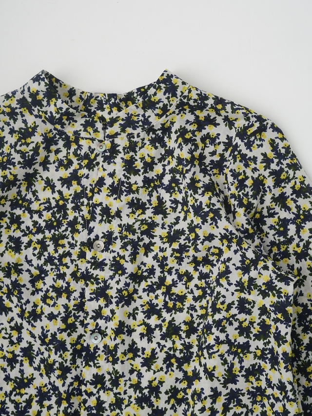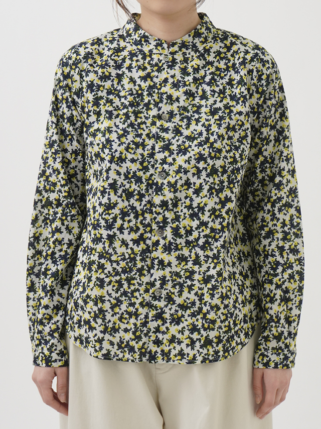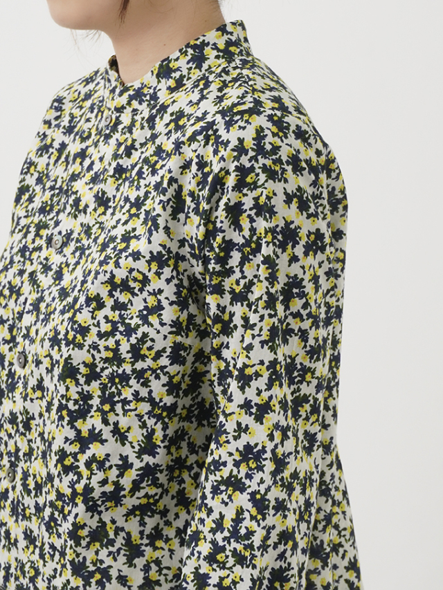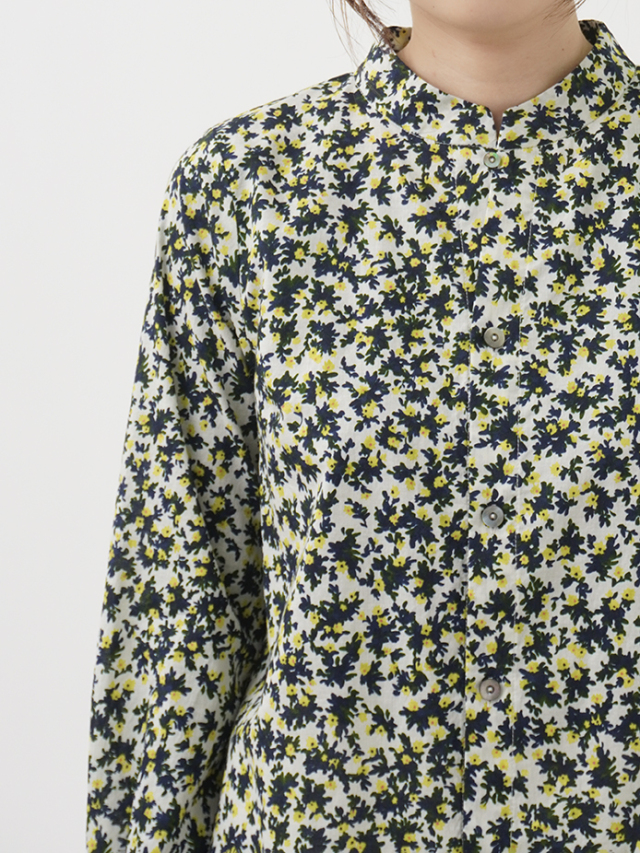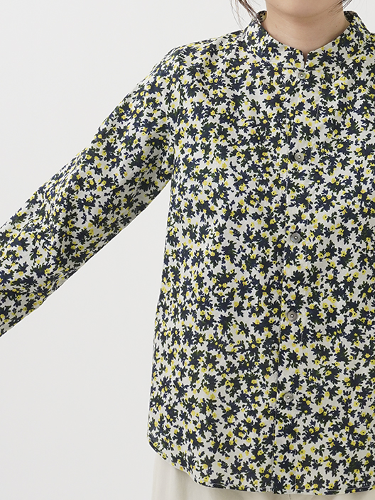 北海道に多く咲く日本原産種のエゾタンポポをモチーフにした柄のスタンド襟シャツ。