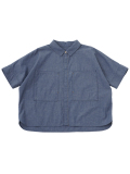 タテ糸とヨコ糸で色を変えたシャンブレー生地を、洗い加工をして、細かいシワ感のある軽やかな表情に仕立てたドルマン袖シャツ。