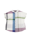 アイボリー地に、6色の色を入れた大きなチェックのショート袖シャツ。