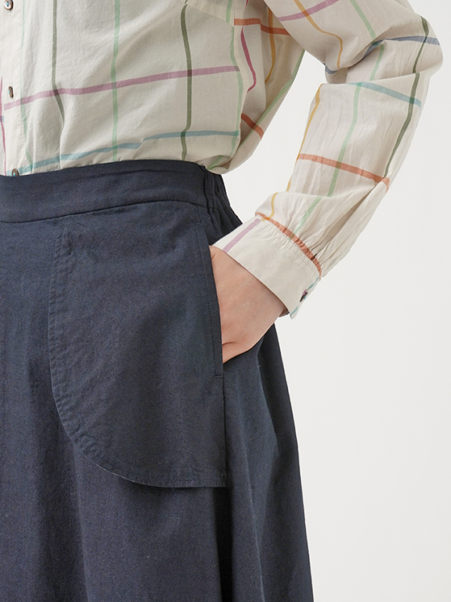 程よい張りと厚みのインディゴ生地を使用したフレアースカート。
