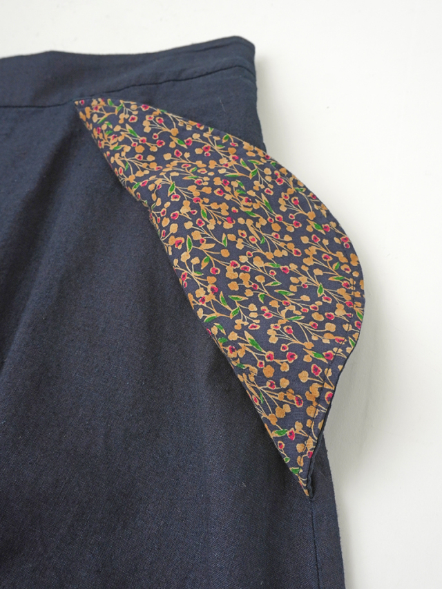 ポケットの内側、後ろベルトループに柄の別地を使用しています。