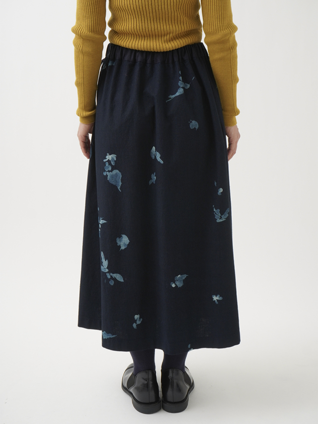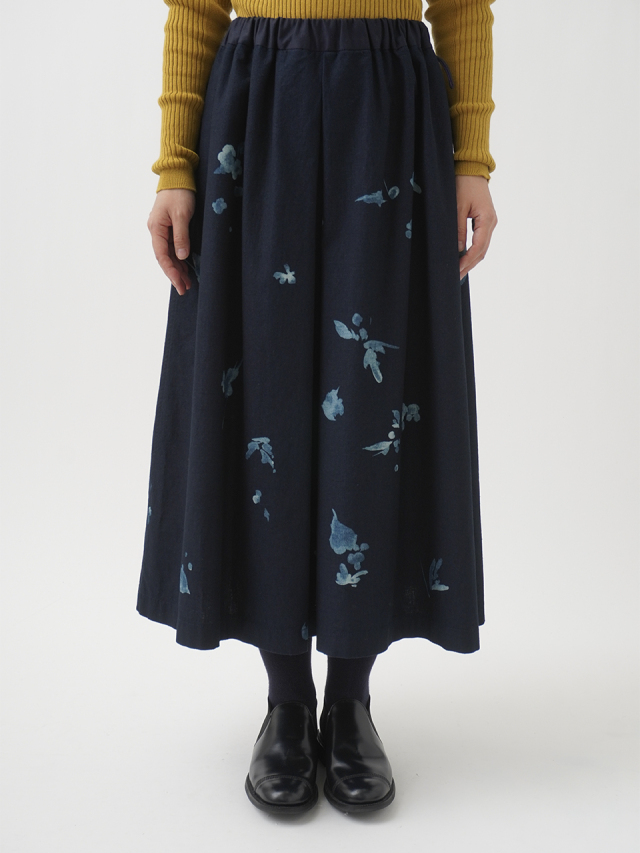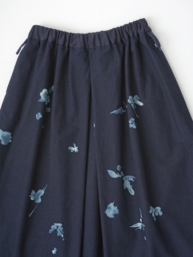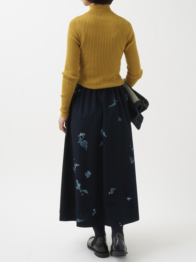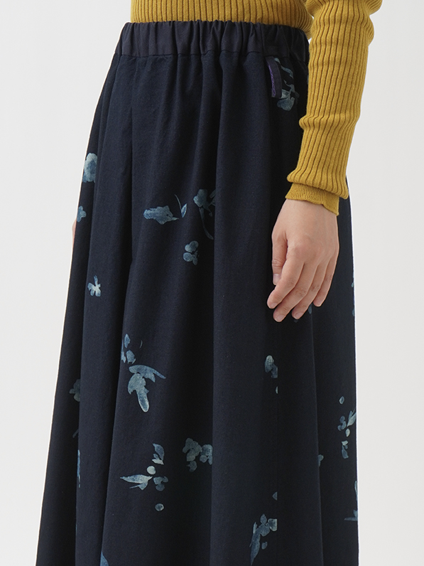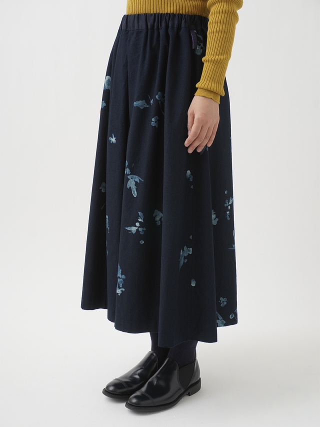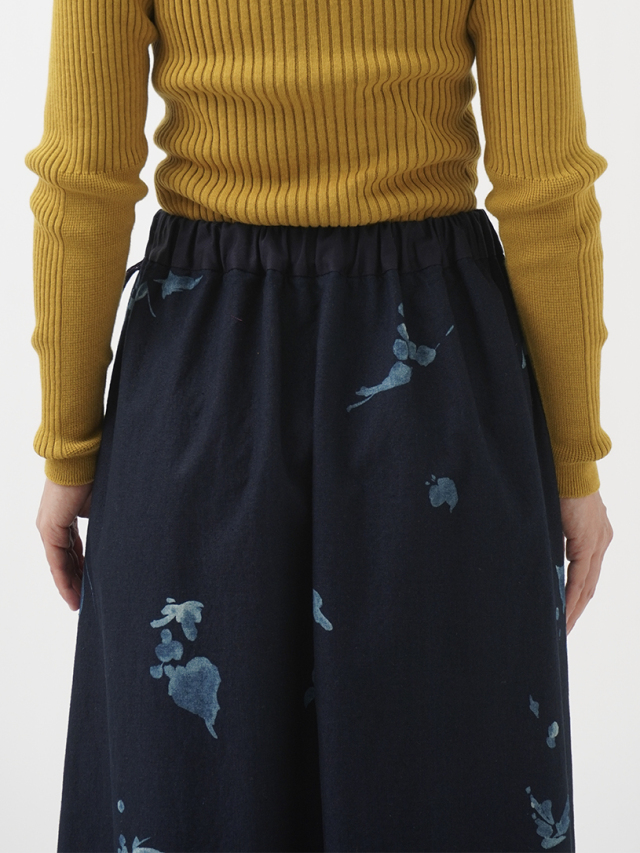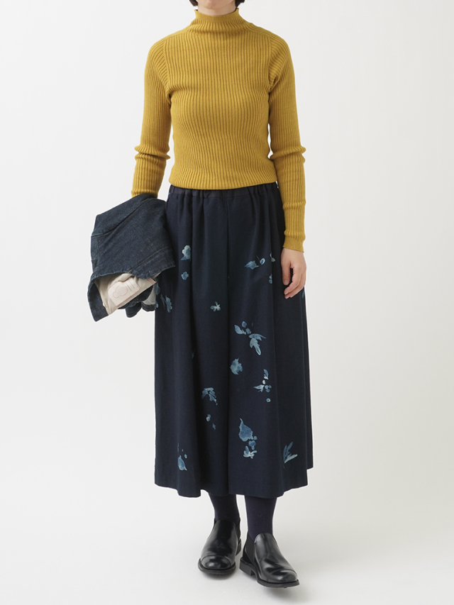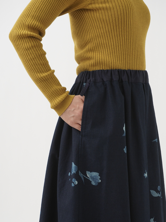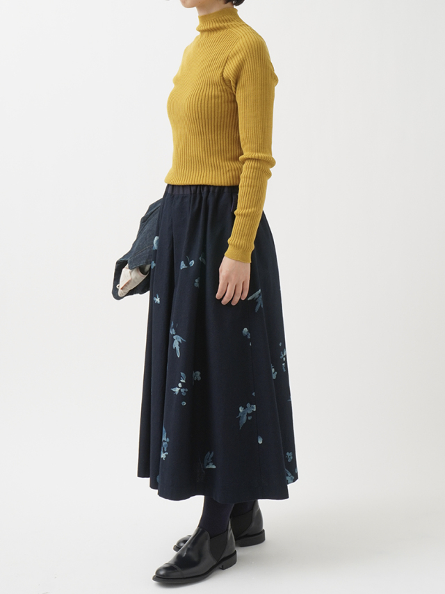 前中心にインバーテッドタックを入れた、ゆるやかに広がるシルエット。