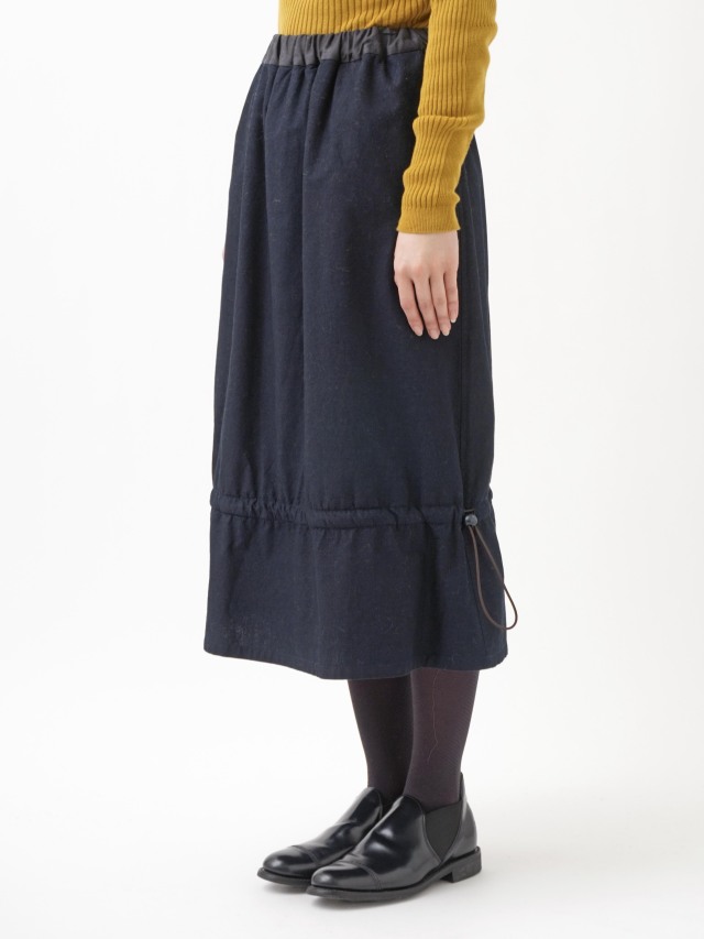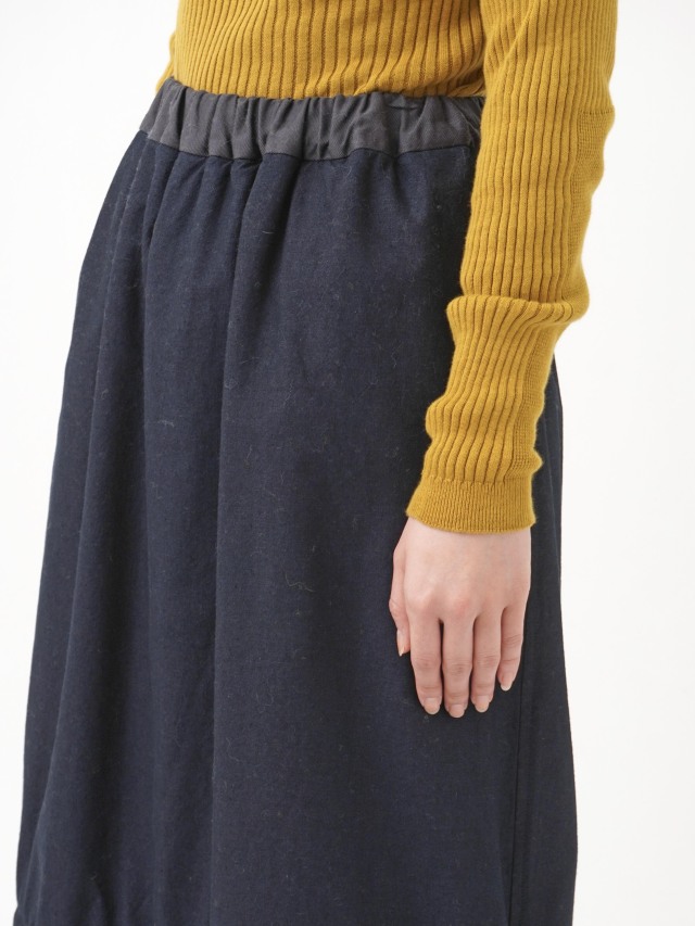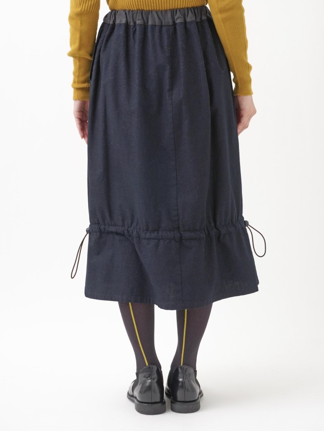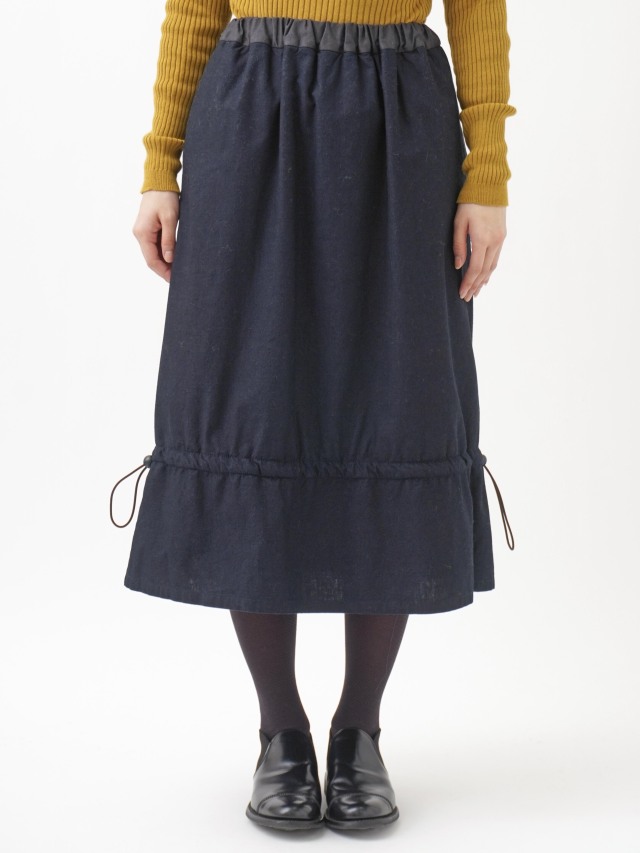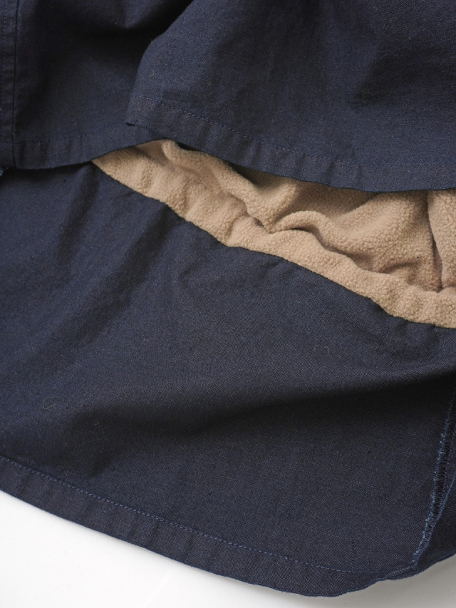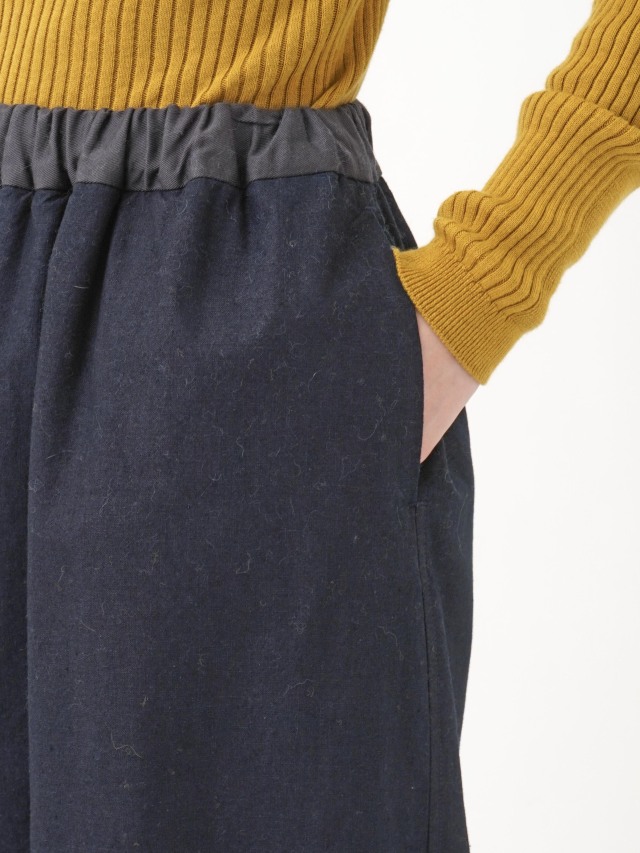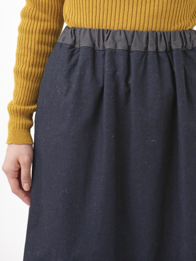 内側にフリース生地を使った、程よい張りと厚みのインディゴ生地のスカート。