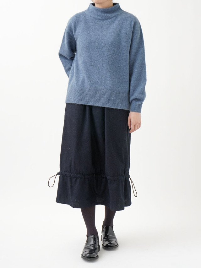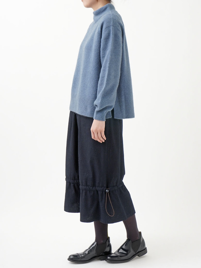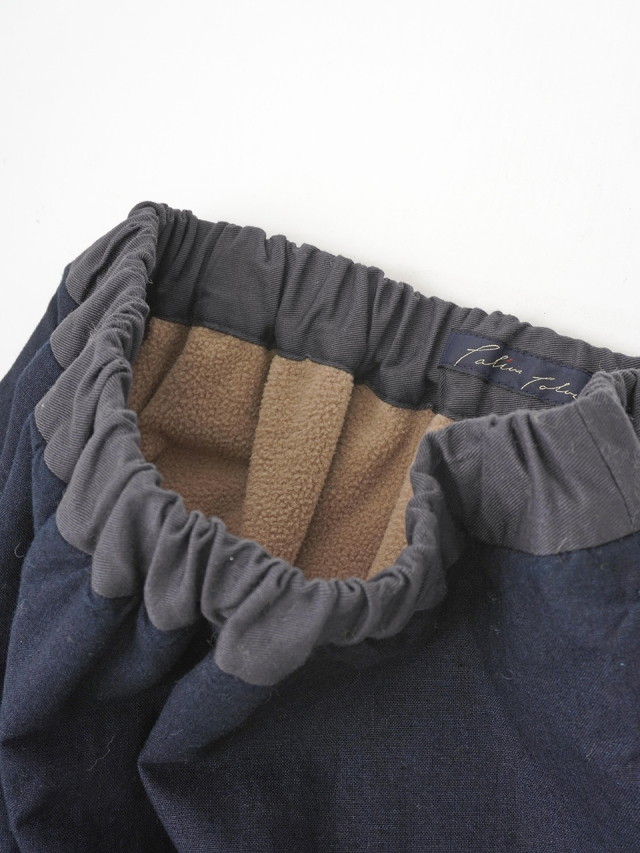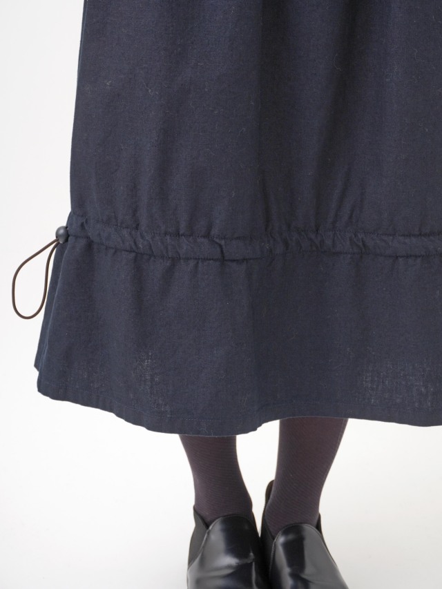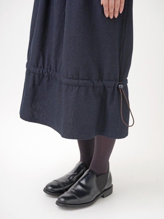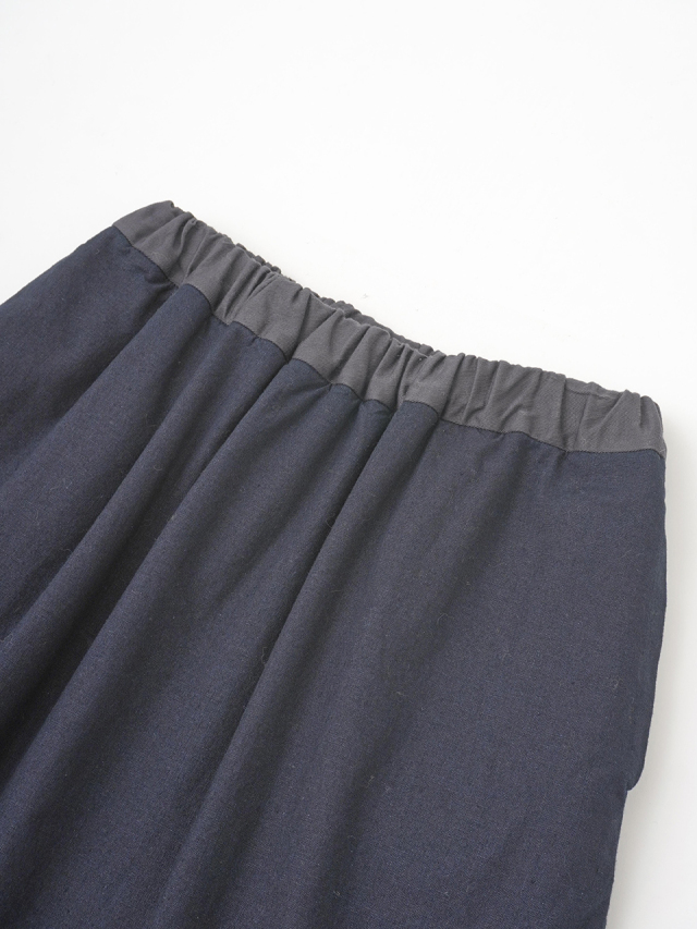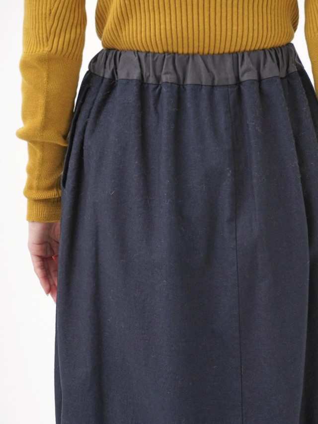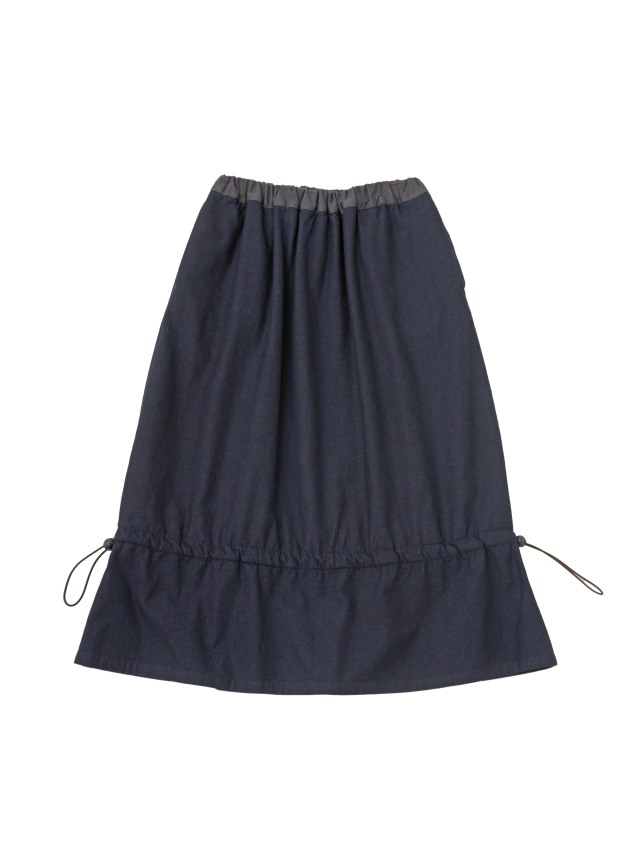 内側にフリース生地を使った、程よい張りと厚みのインディゴ生地のスカート。