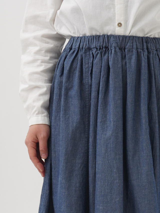 奥行きのある表情の、タテ糸ヨコ糸で色を変えた、張りのある軽やかな綿麻素材です。