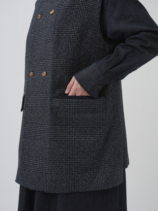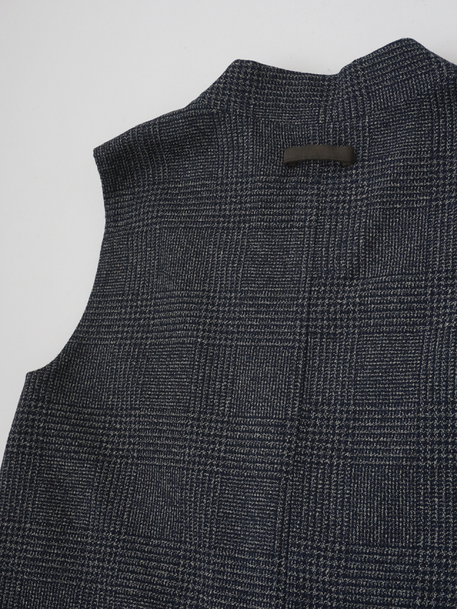 ほどよい抜け感の出るオフスタンド襟のベスト。