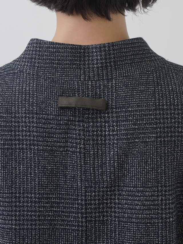 インディゴとベージュの2色でつくった杢糸を使い、ツイード風な見た目を表現したグレンチェック柄。