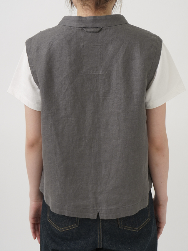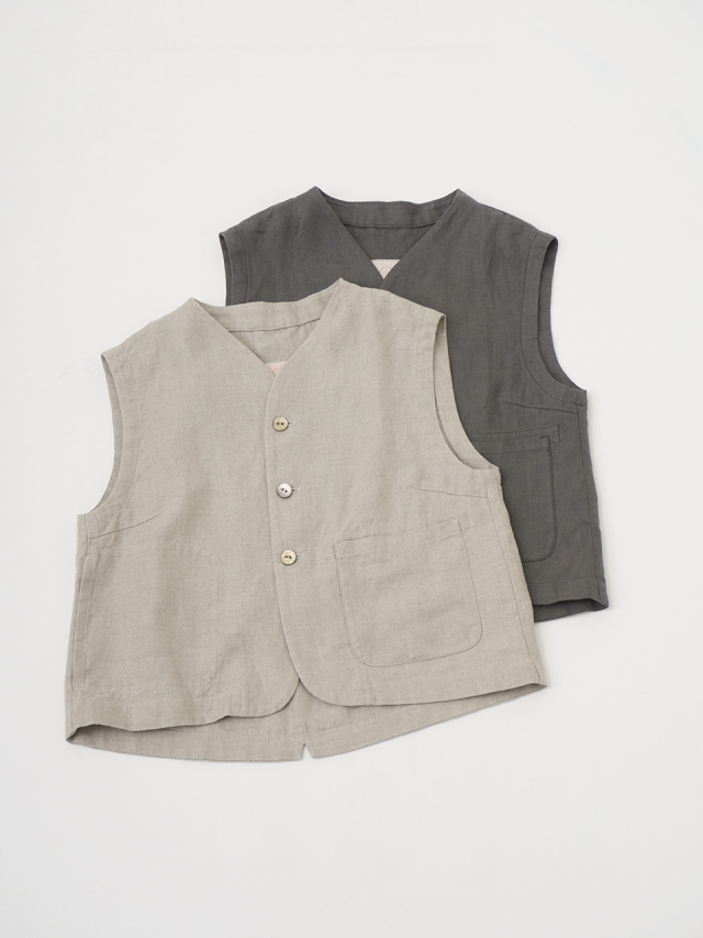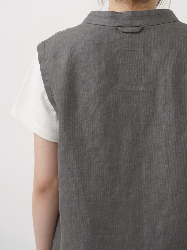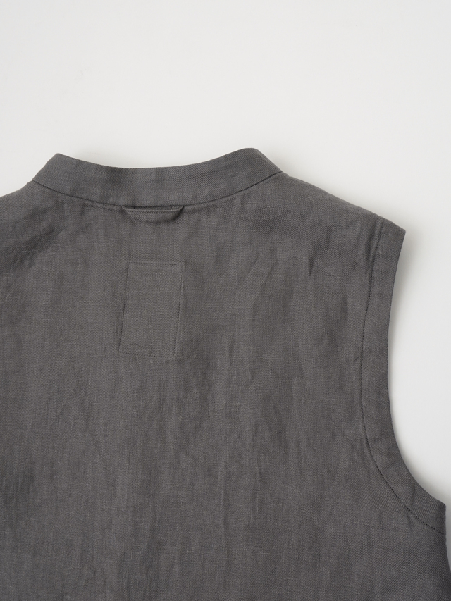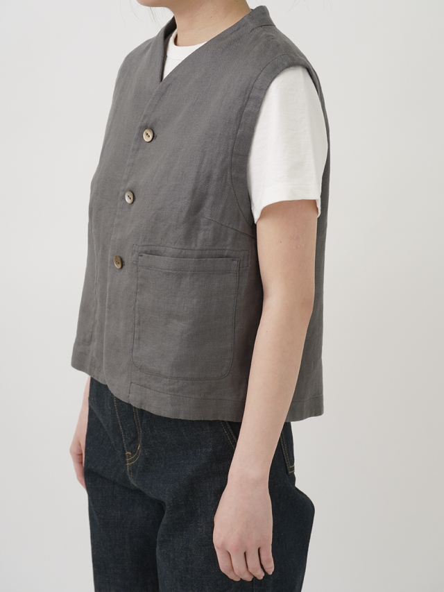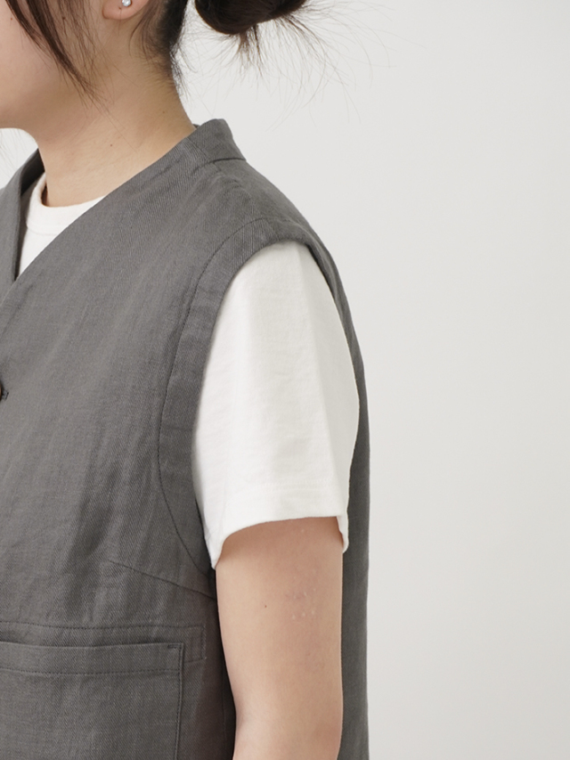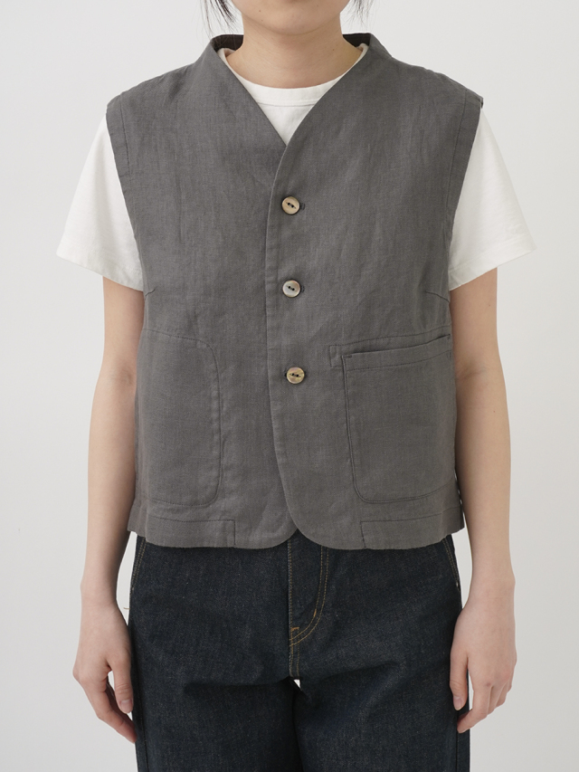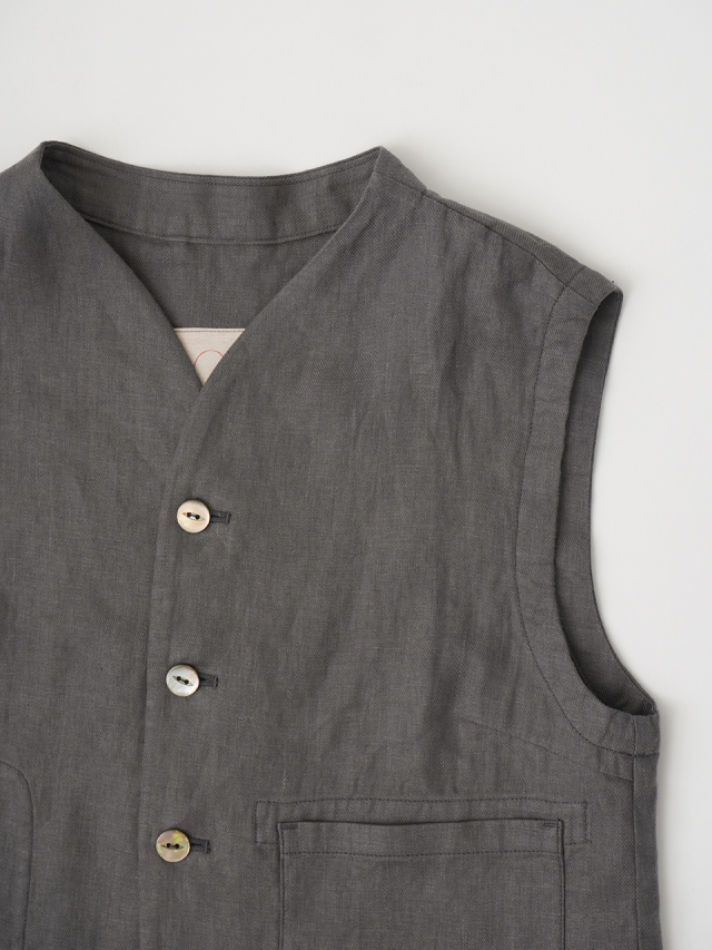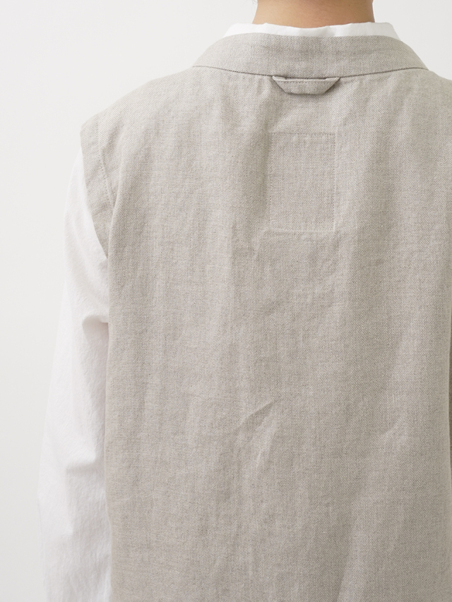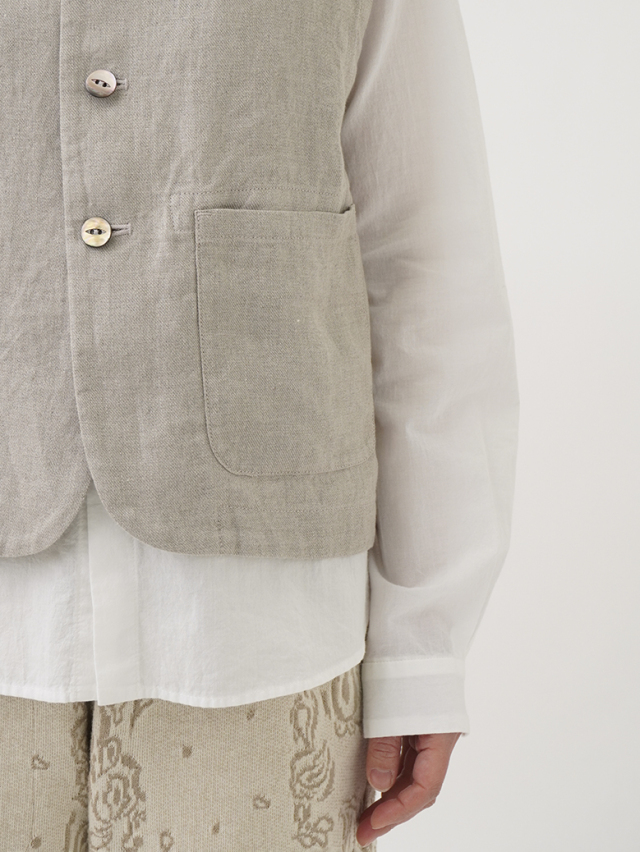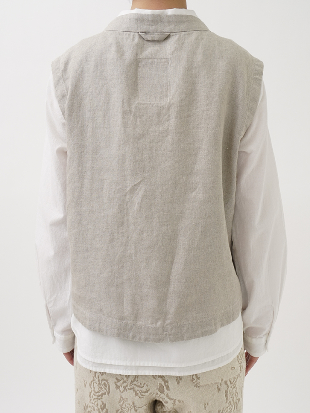 ナチュラルな光沢がある、さらりとした風合いのリネンツイルベスト。