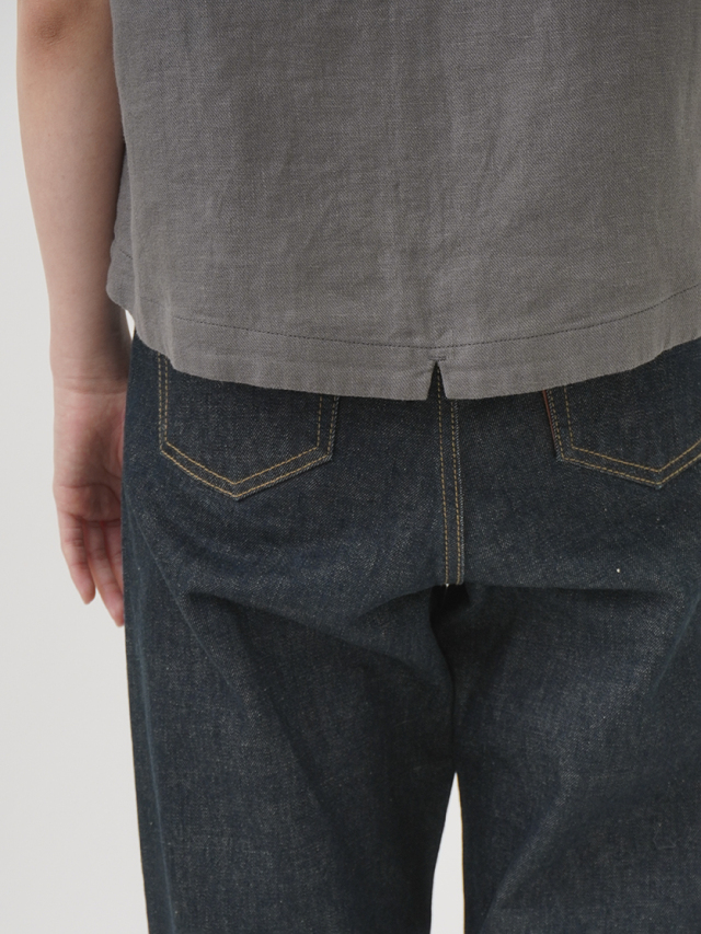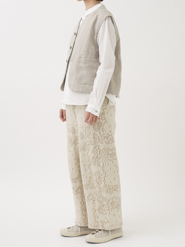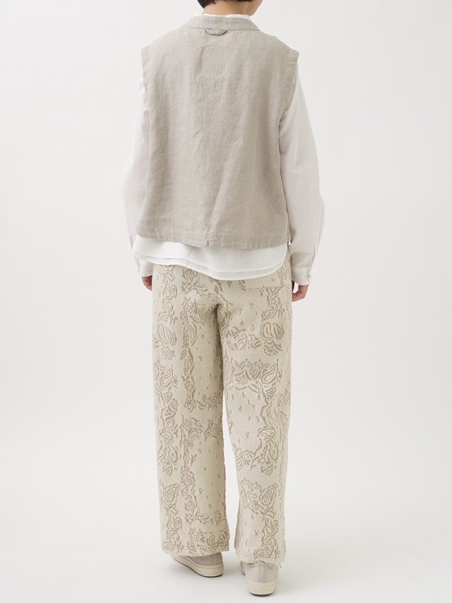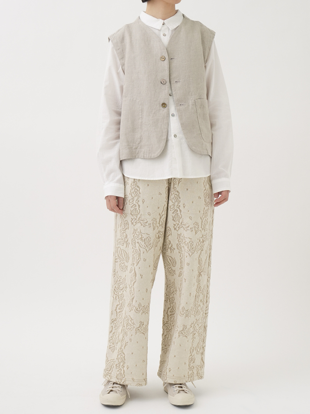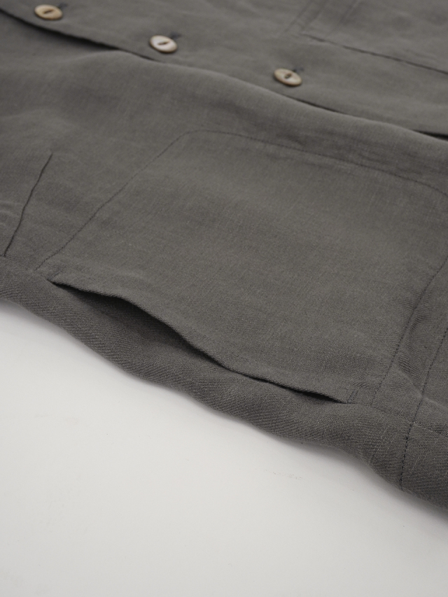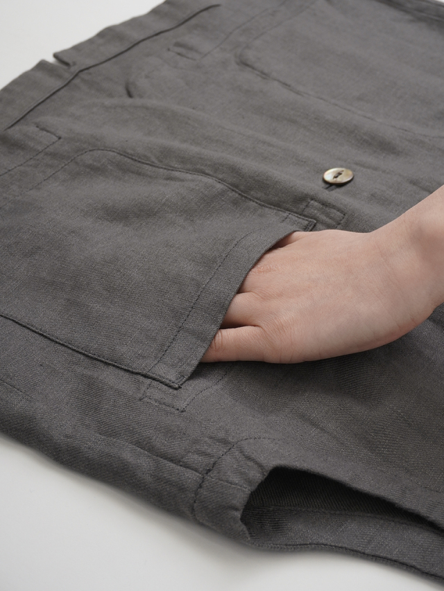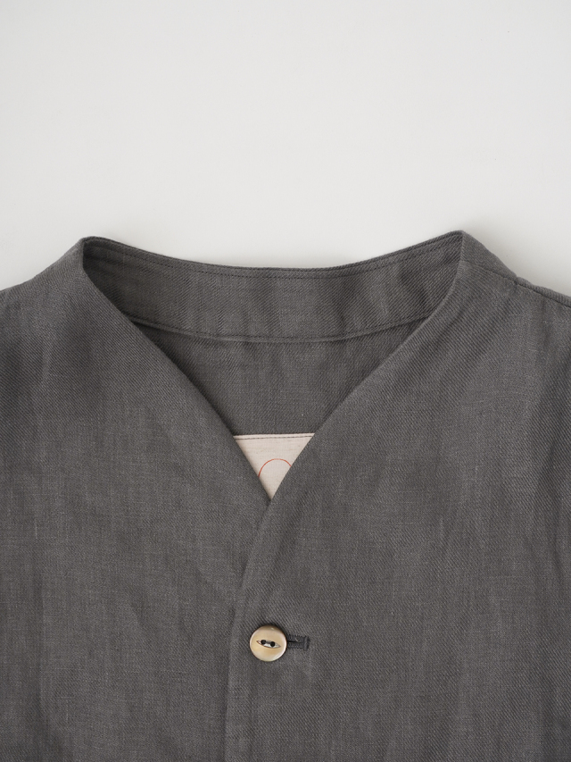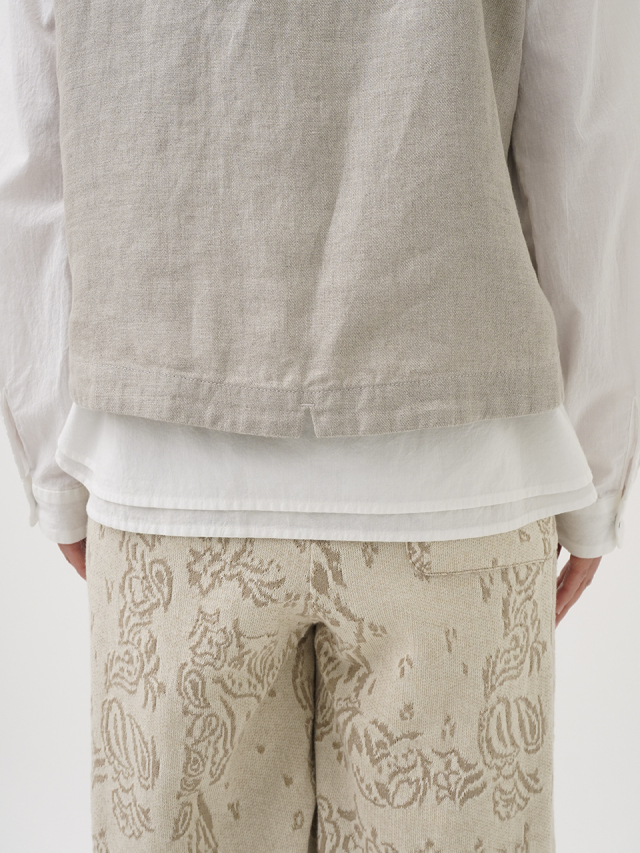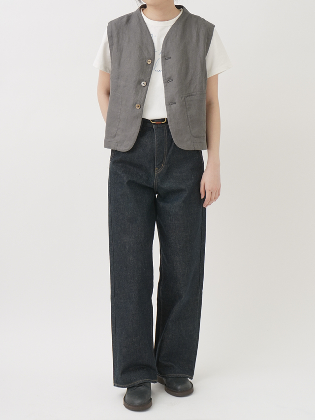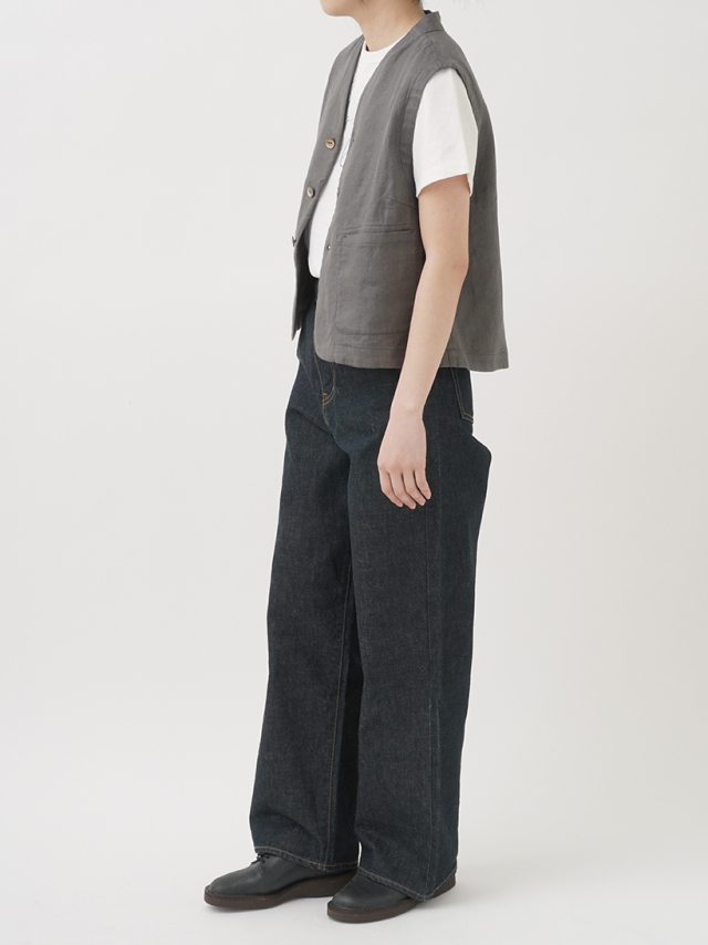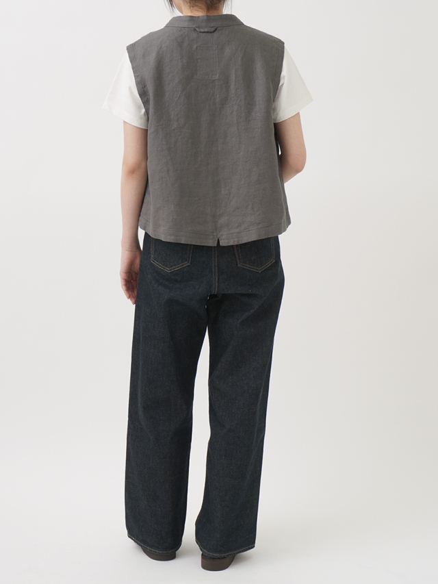 ナチュラルな光沢がある、さらりとした風合いのリネンツイルベスト。