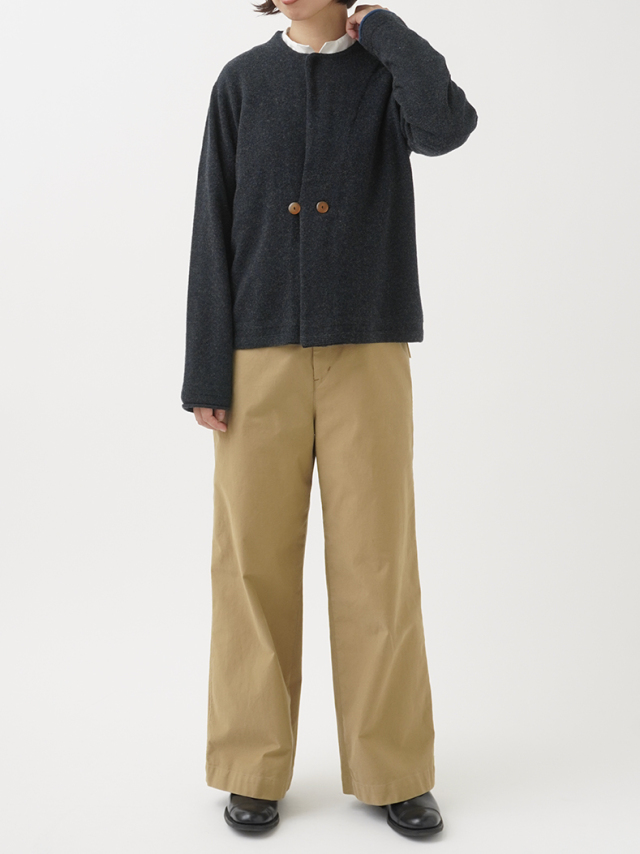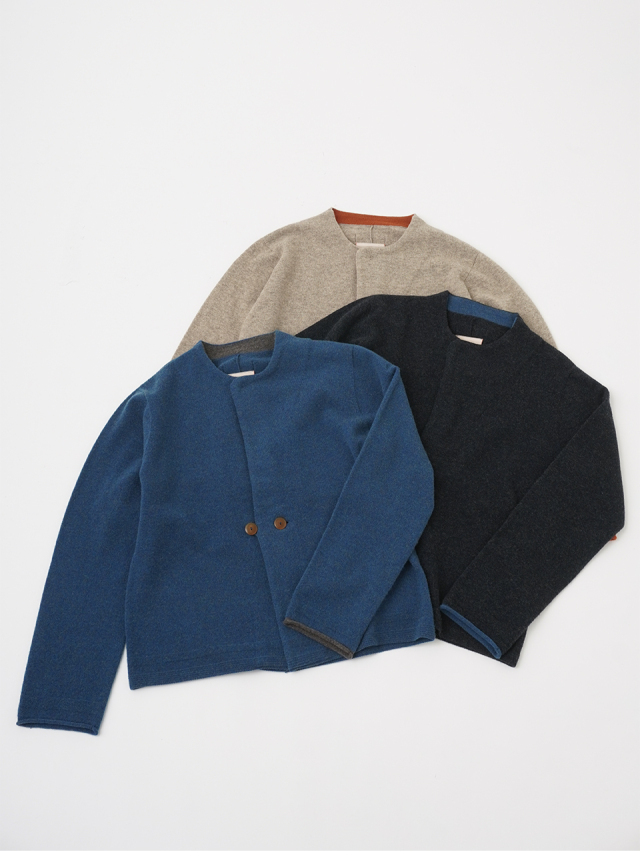 軽く、柔らかな風合いと深みのある色合いが魅力のカーディガン。