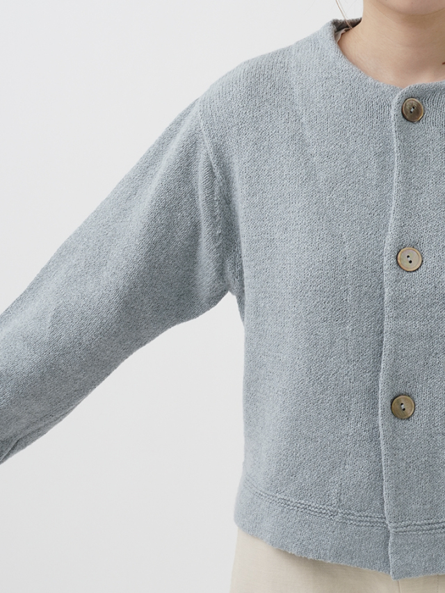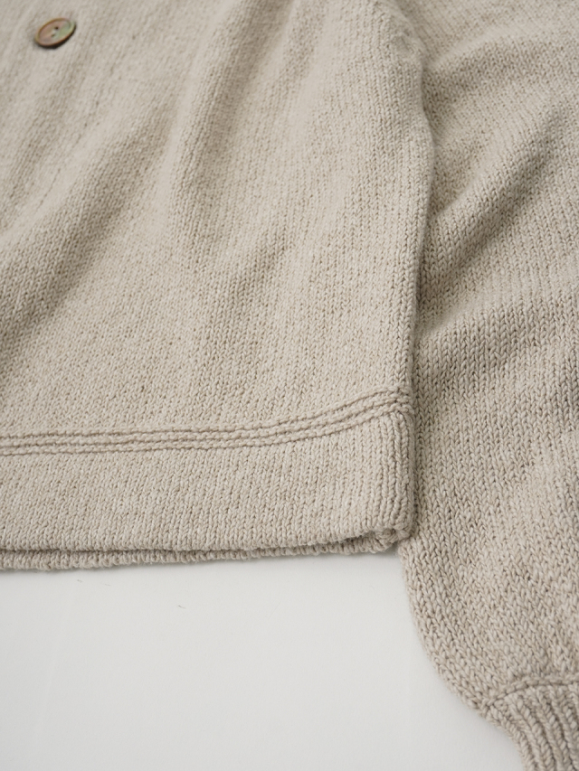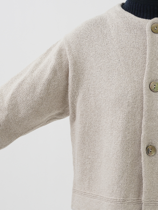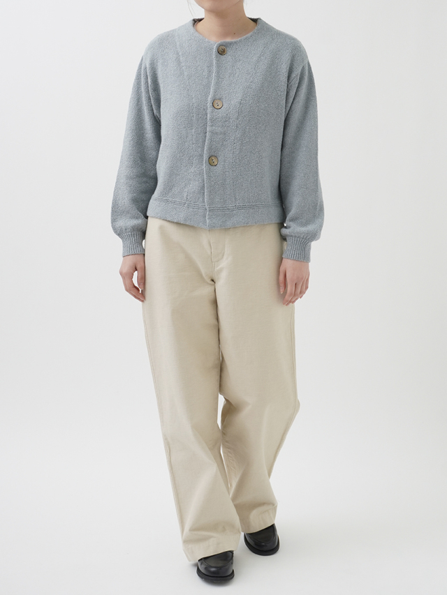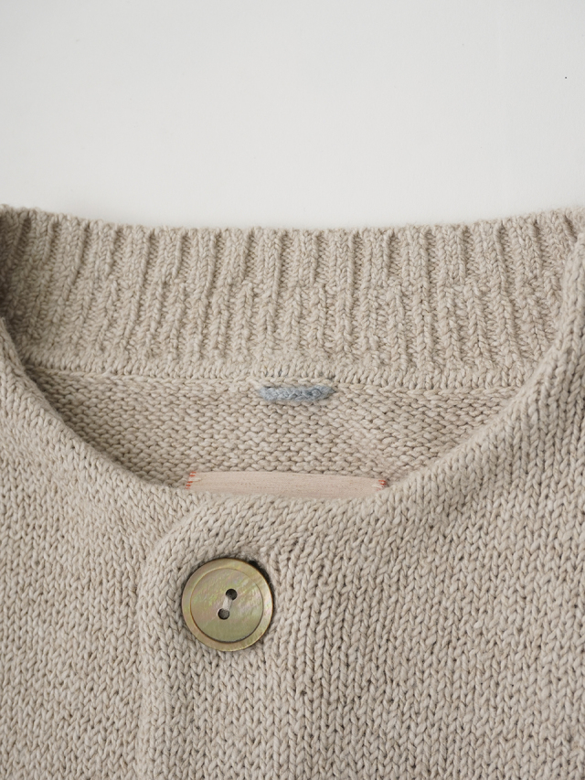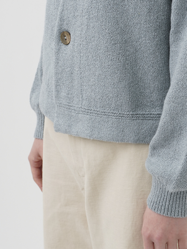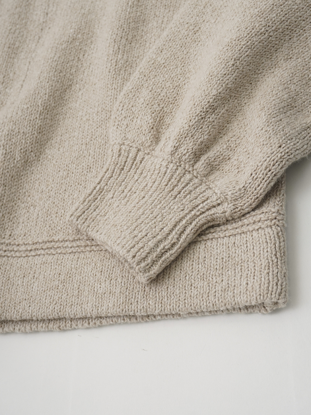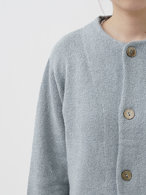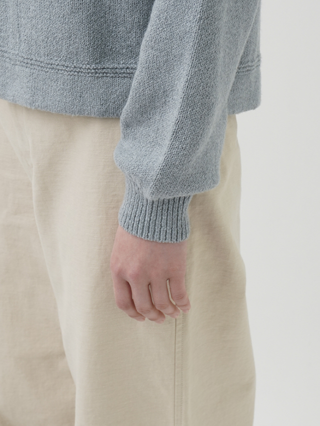 ふんわり感が出るよう甘く撚ったコットン糸は、あたたかみのある風合いで季節の変わり目に重宝します。