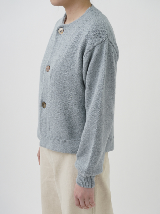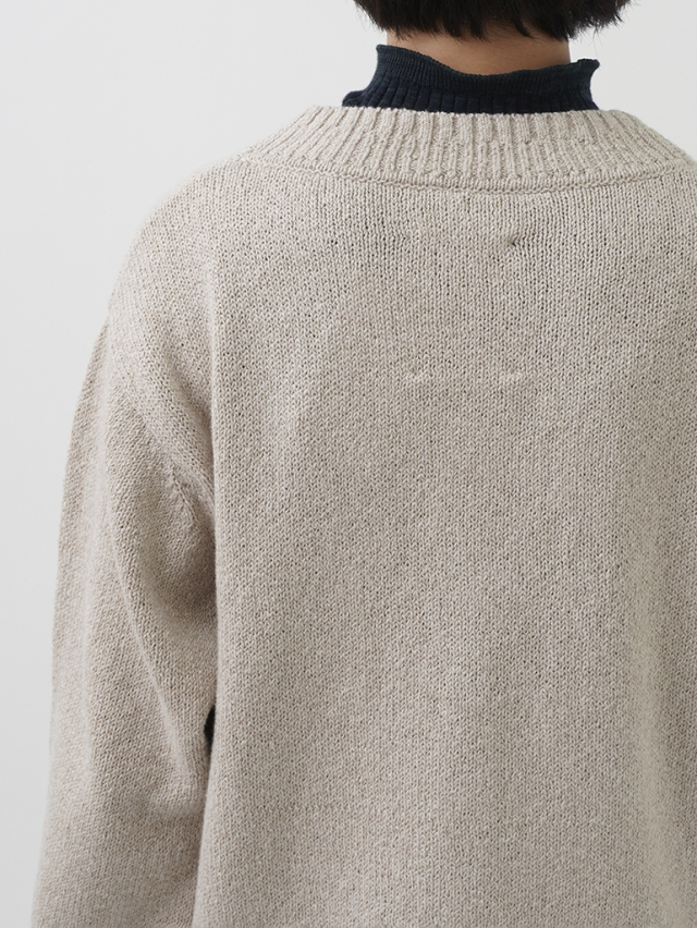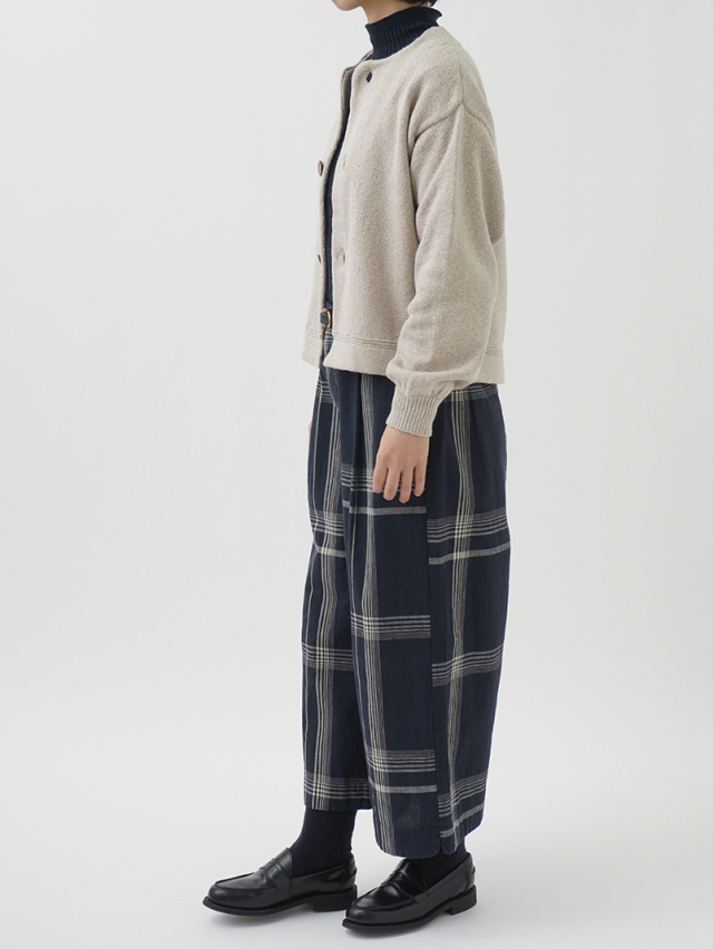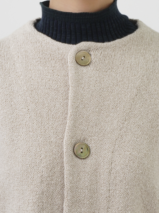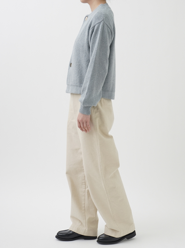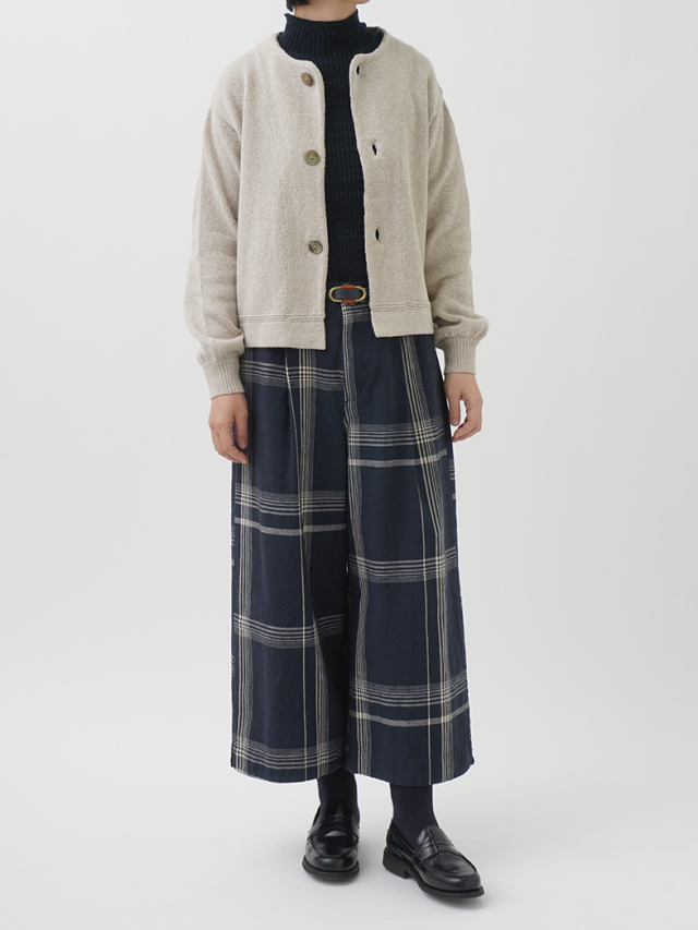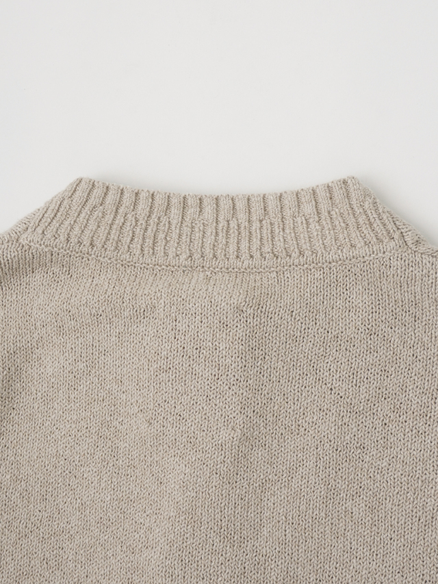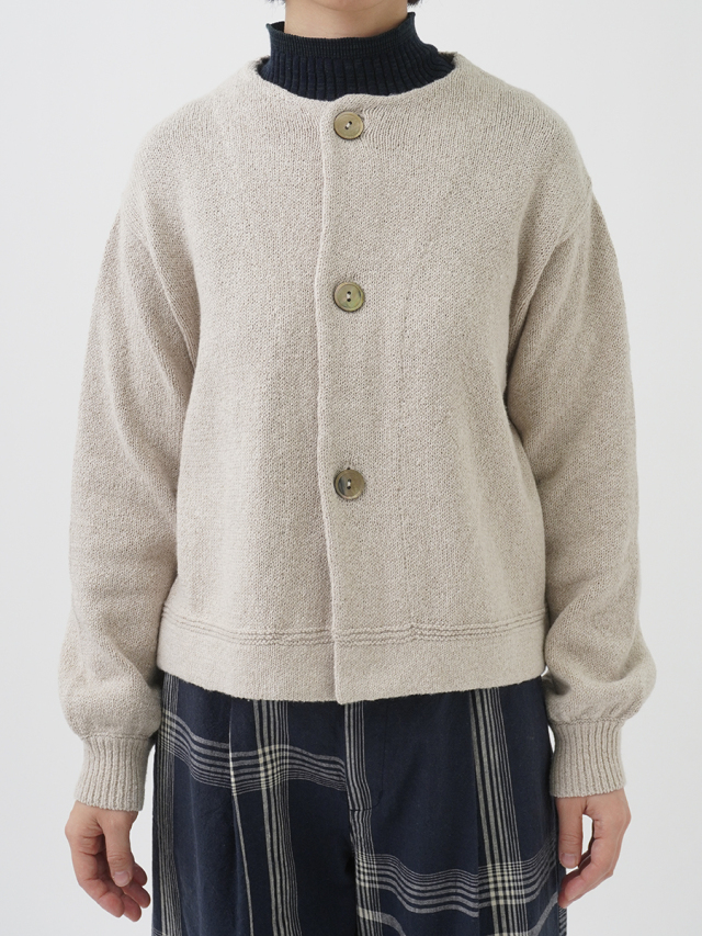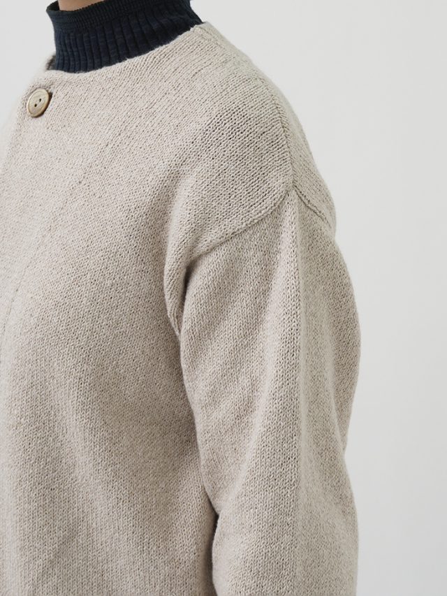ふんわり感が出るよう甘く撚ったコットン糸は、あたたかみのある風合いで季節の変わり目に重宝します。