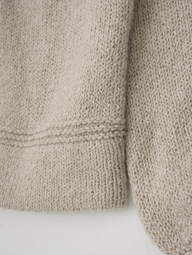 裾に編み模様を入れ、アクセントにしました。