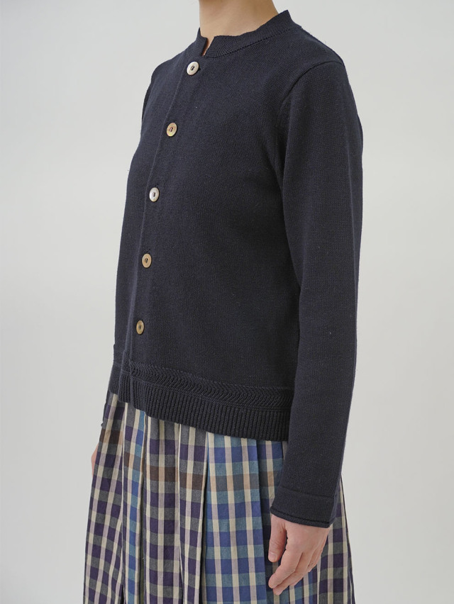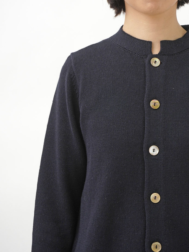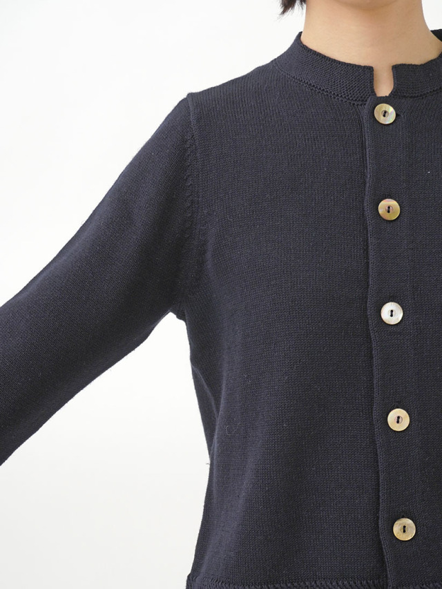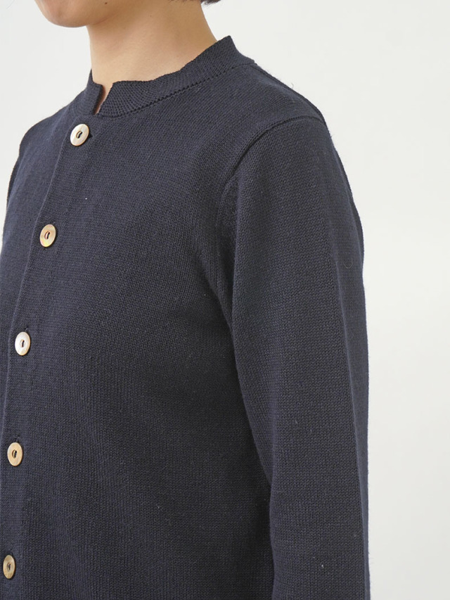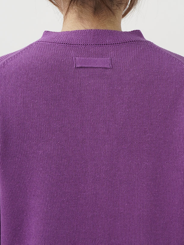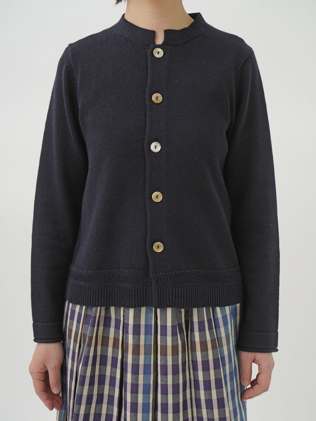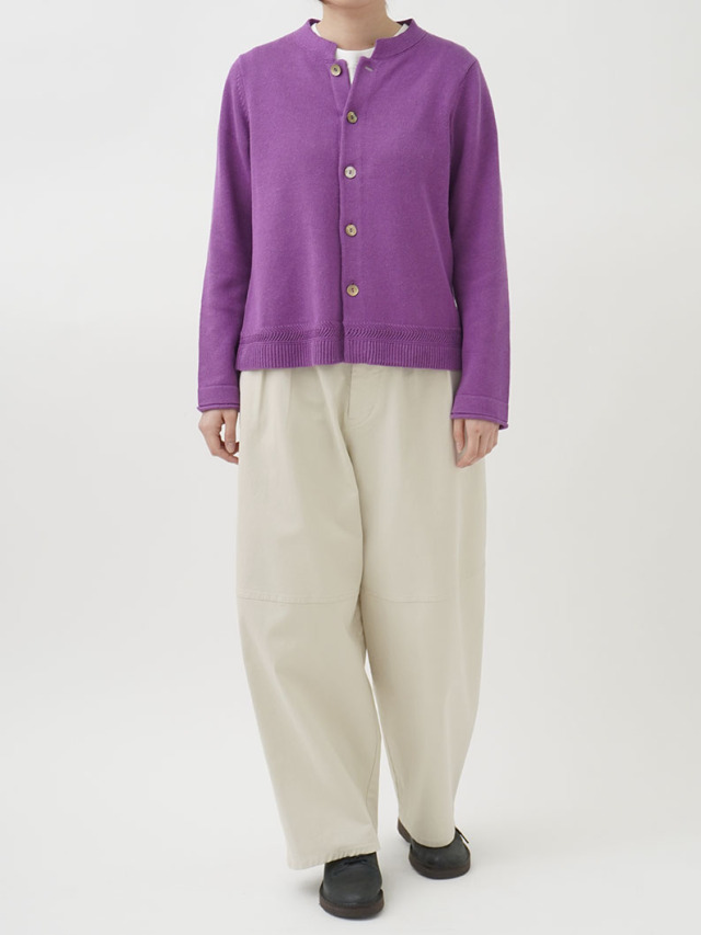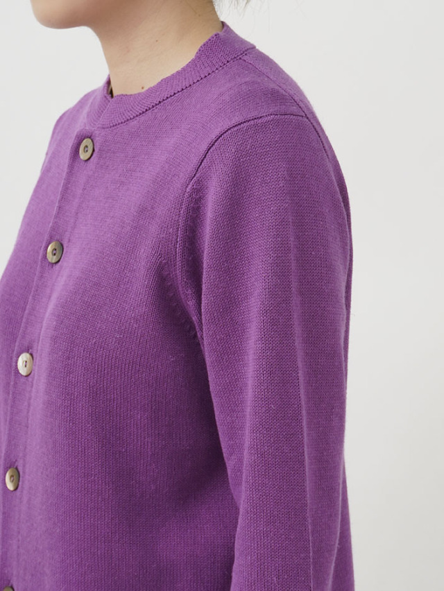 ラミーのさらっとした艶のある風合いと、コットンのなめらかさが混ざったオリジナルカラーのカーディガン。