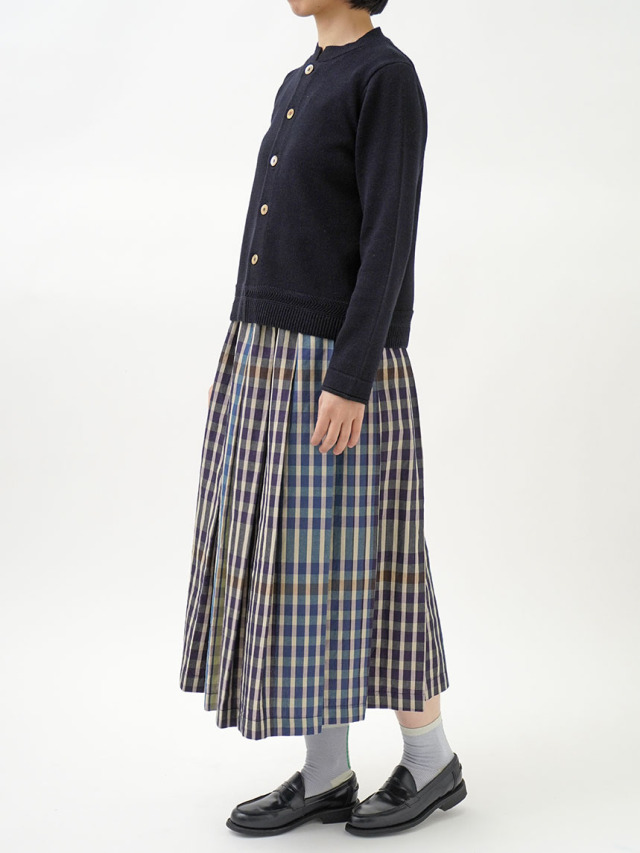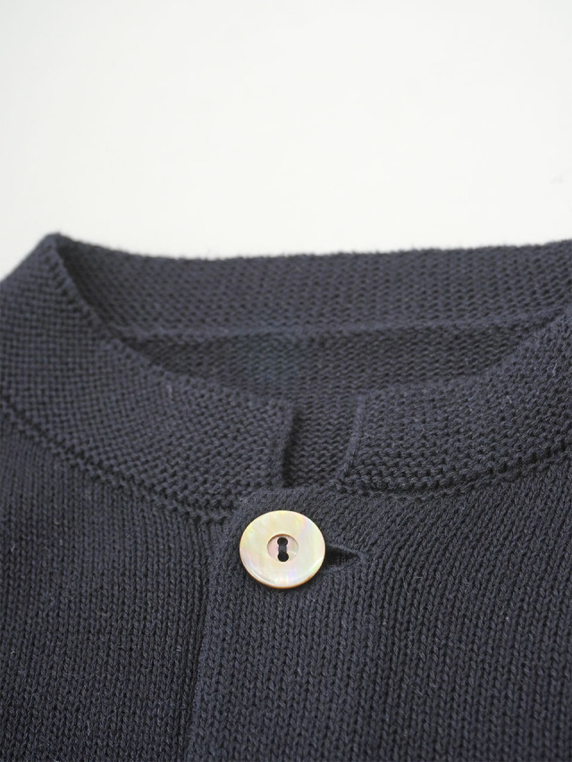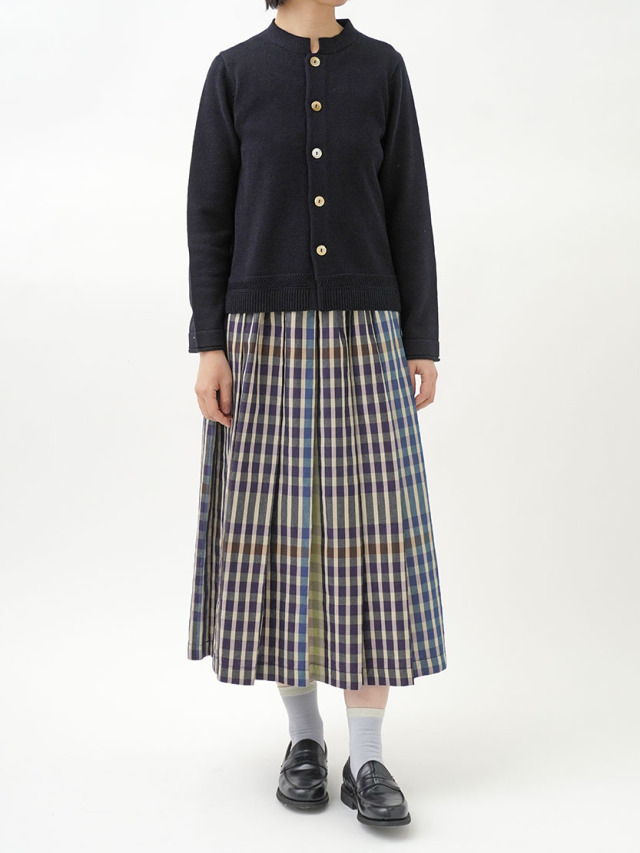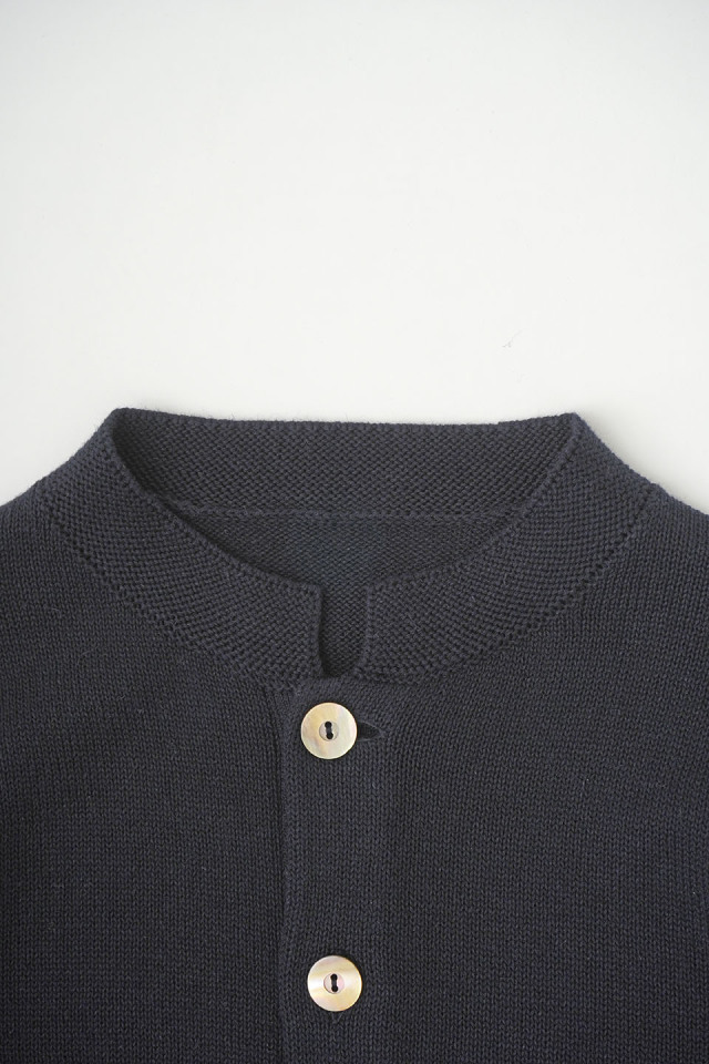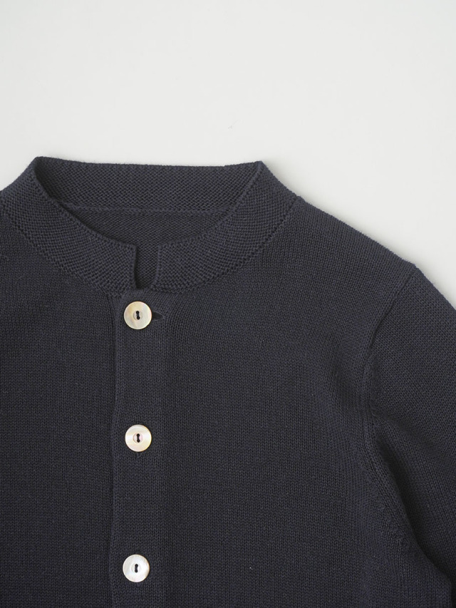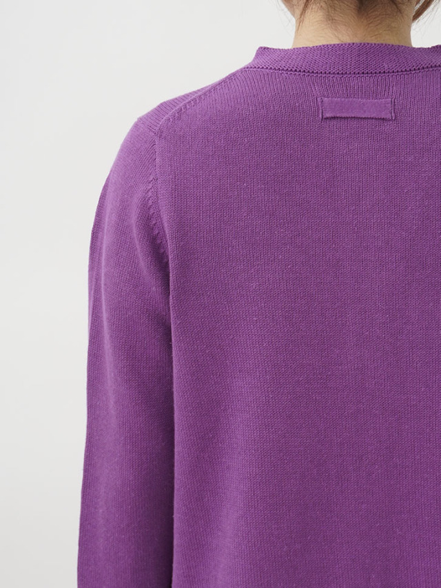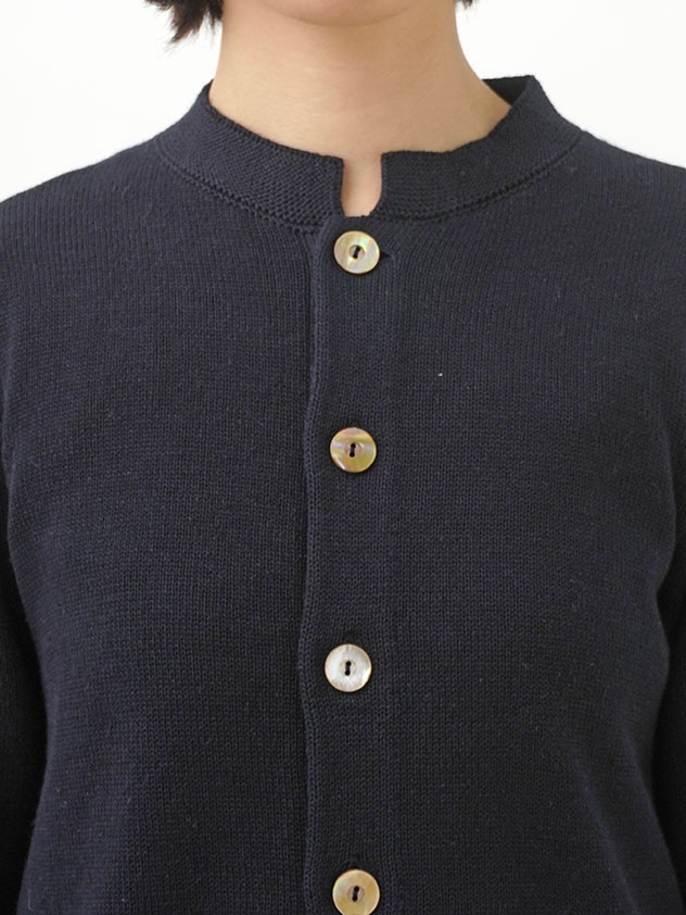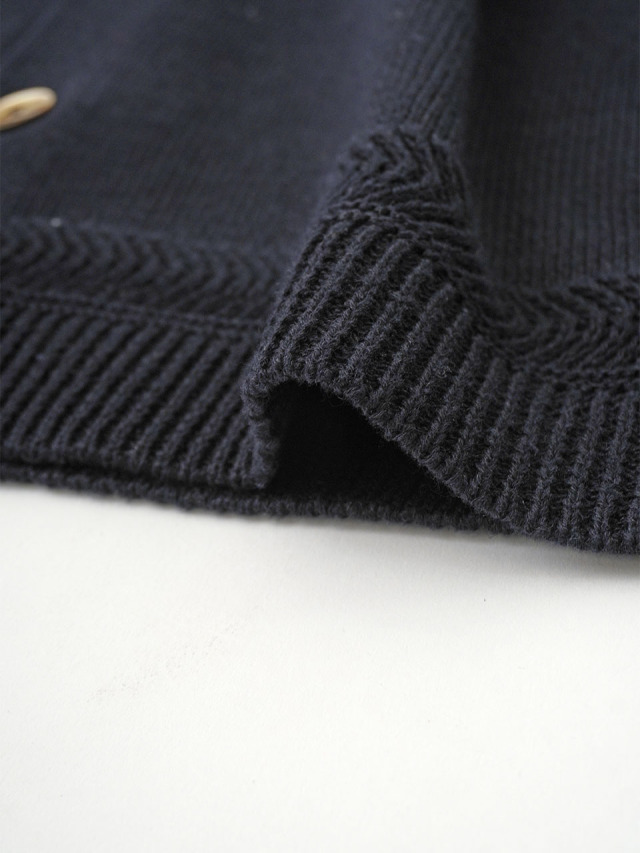 ラミーのさらっとした艶のある風合いと、コットンのなめらかさが混ざったオリジナルカラーのカーディガン。